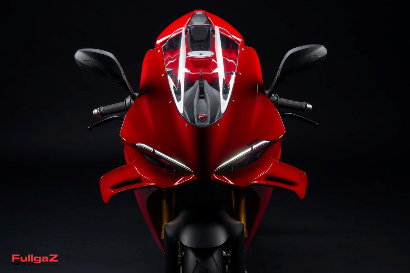עיניכם הרואות – יש על הפניגאלה V4 R את מיטב האביזרים האווירודינמיים העדכניים, הכוללים כנפונים מסיביים בחזית לטובת יותר כוח הצמדה במהירויות מסלול בקו ישר – בשיעור של 25% יותר מהדור הקודם – ומאפשרים כוח הצמדה השווה ל־4.7 ק"ג במהירות של 270 קמ"ש ו־6 ק"ג במהירות של 300 קמ"ש. חדש בדור הזה הם הספוילרים הצדיים (Corner Sidepods), שהוצגו באופנוע ה־MotoGP של שנת 2021, שנועדו לספק יותר אחיזה בהטיה ולאפשר מהירות פנייה גבוהה יותר. ישנו גם כונס אוויר אקטיבי, שמאפשר יותר זרימת אוויר למנוע במהירויות קצה, וכן עוד 1.2 כ"ס באותן מהירויות.