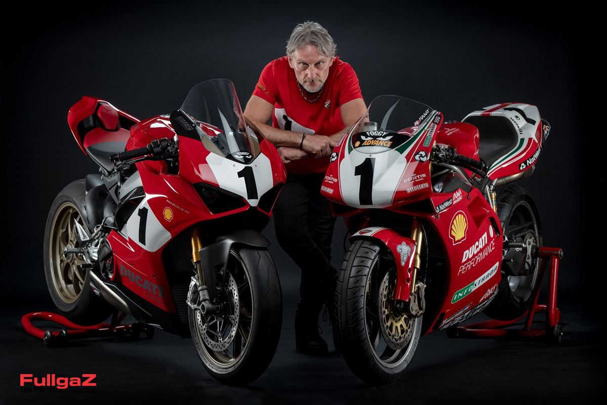 החיבור של דוקאטי ואליפות הסופרבייק העולמית התחיל בשנת הבכורה לסדרה – 1988 – עם דאג פולן. האמריקאי ניצח על גבי ה-851 ויצר ברית ארוכת שנים של דוקאטי עם הסדרה. בשנת 1994 הוצג לעולם הדוקאטי 916 – אופנוע אייקוני שהותיר חותם גדול לא רק על עולם האופנועים הכללי, אלא גם בעולם המרוצים. הוא ומחליפו – ה-996 – ניצחו ב-120 מרוצים, וזכו ב-8 אליפויות יצרנים ו-6 אליפויות רוכבים. קארל פוגרטי, אחד מרוכביו שאסוציאטיבית הכי מזוהה עם הדגם, זכה עימו (916 ו-996) ב-43 מרוצים ו-3 אליפויות ׁ(ובסך הכל ניצח 59 מרוצים, כולל עם הונדה, וזכה ב-4 אליפויות עם דוקאטי). לכן אין ספק שהוא הרוכב המתאים ביותר להציג את המהדורה המיוחדת – פניגאלה V4 25° Anniversario 916.