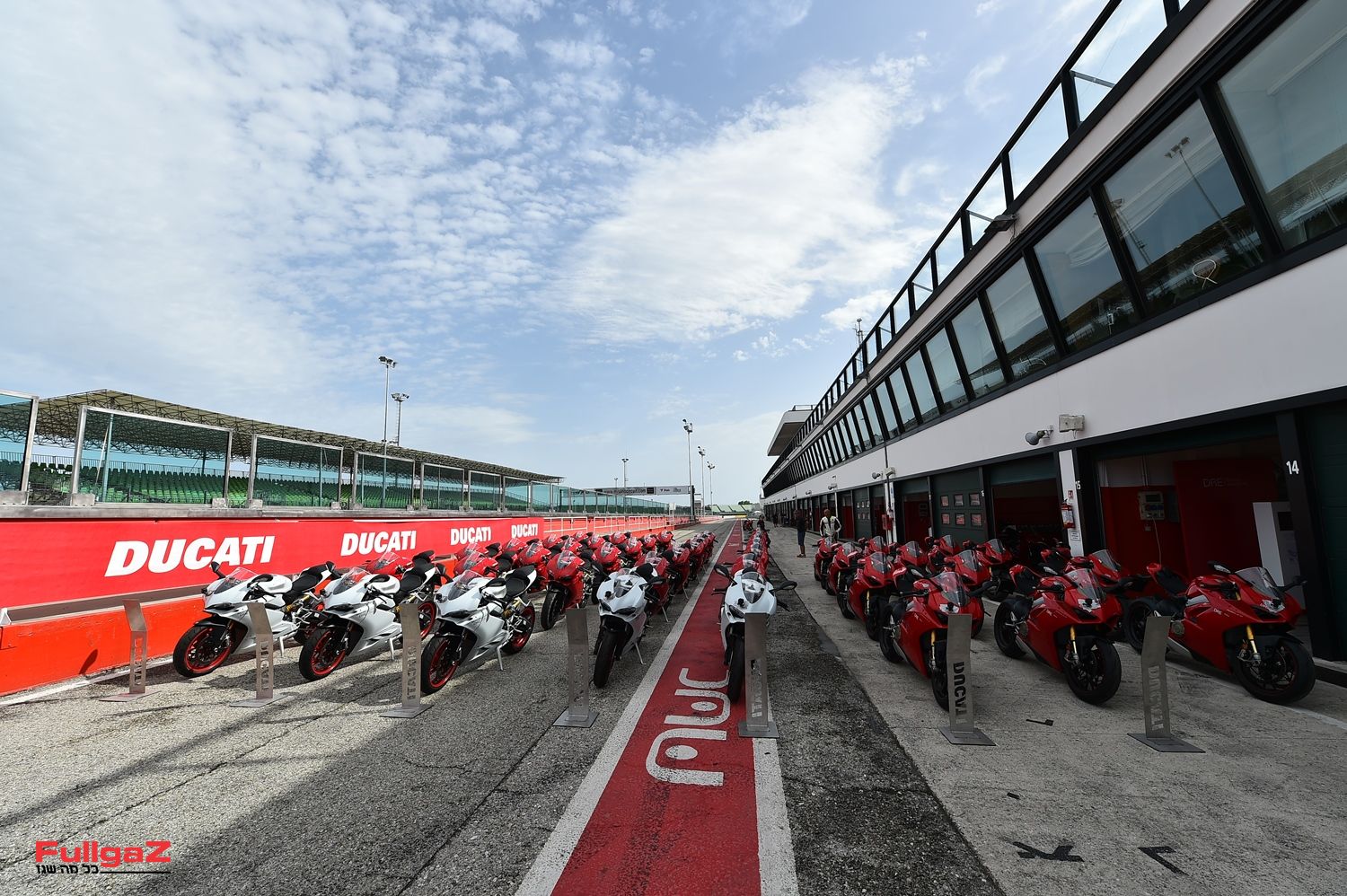 חם על המסלול במיזאנו. חם, אבל לא כמו שחששתי שיהיה. בשמיים משייטים עננים מגניבים, והתחזיות שדיברו על גשם – התבדו. יום מושלם. אבל את מי מעניין מזג האוויר כשאני חנוט בחליפת D-Air של דיינזה ממותגת דוקאטי ועומד להגשים חלום מוטורי?