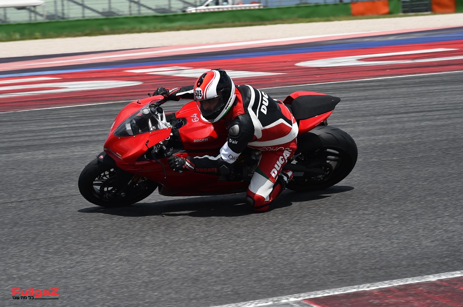 אני עולה לסשן הראשון, נרגש מגודל המעמד ומאופנוע-העל שעומד מולי על שני סטנדים של מרוצים, כשהצמיגים עטופים במחממי צמיגים. המכונאי של דוקאטי מסיר את מחממי הצמיגים, והטכנאי של פירלי ניגש לאופנוע שלי עם מד טמפרטורה דיגיטלי, בודק את הטמפרטורה ואומר לי "פרפקטו, יו קן גו".