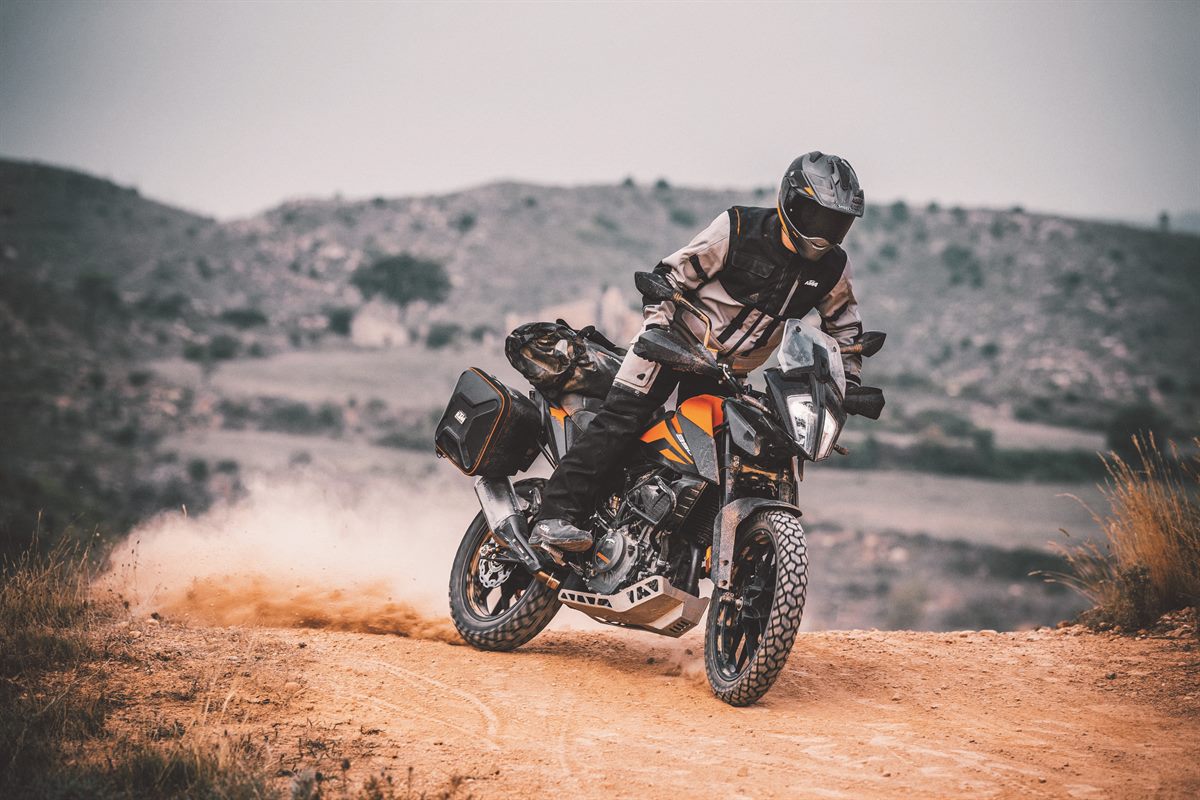 השלדה עשויה ממסבך משולשי פלדת כרומולי, כשאליה מחובר מלפנים מזלג הפוך של WP בקוטר 43 מ"מ מדגם APEX, עם כיווני שיכוך כיווץ ושיכוך החזרה. מאחור יש בולם של WP עם כיווני עומס קפיץ ושיכוך החזרה, ומהלך הגלגלים עומד על 170 מ"מ מלפנים ו-177 מ"מ מאחור. הגלגלים יצוקים במידות אדוונצ'ר קלאסיות – "17 מאחור ו-"19 מלפנים, והבלם הקדמי בקוטר 320 מ"מ עם קליפר רדיאלי ומערכת ABS דו-ערוצית הכוללת גם מצב שטח (ניתוק גלגל אחורי). בנוסף, יש בקרת אחיזה MTC.