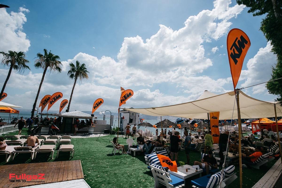 על החוף חיכו לרוכבים פעילויות מים כמו סאפ ואבובים / בננה, כיבוד כיד המלך, ובשעות הצהריים הוגשה במסעדה המקומית ארוחת צהריים מושקעת במיוחד. החוף מותג בצבעי ק.ט.מ ואינדיאן, ובמקום עמדו גם אופנועי תצוגה פופולריים של צמד המותגים. בנוסף, רוב עובדי מוטוספורט נכחו במקום, כולל הבכירים, כך שהלקוחות יכלו ליצור קשר בלתי אמצעי ובלתי פורמלי עם בכירי המותגים – דבר שתמיד מחזק את הקשר. בשעות הצהריים המאוחרות התפזרו הרוכבים לביתם עצמאית.