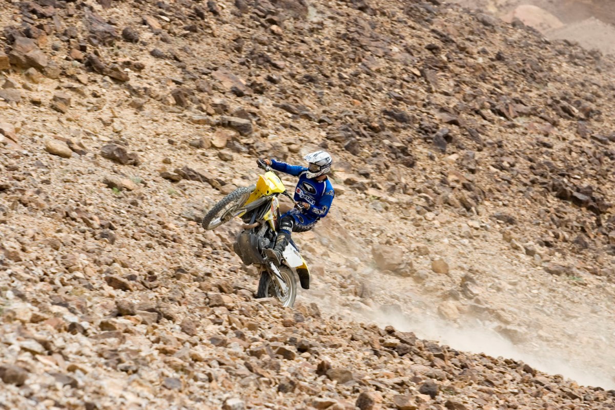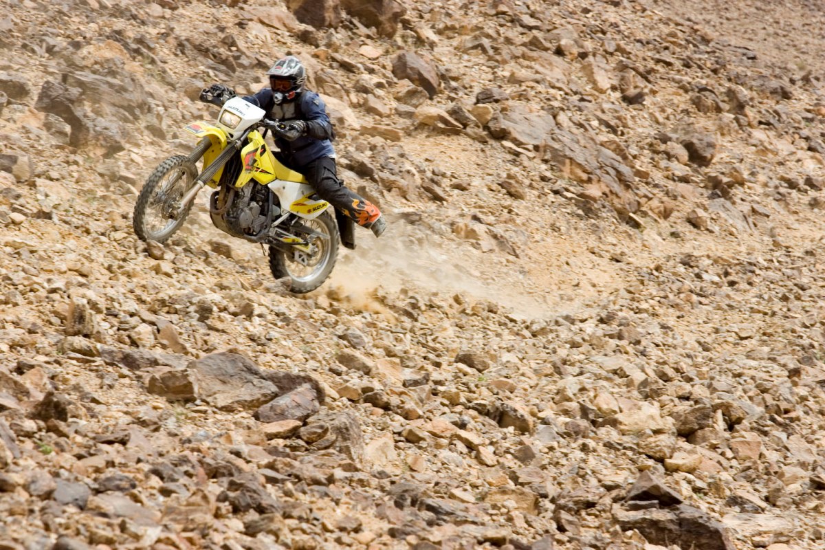 אחרי חינוך שטח ביזארי שכזה, כשיוצא לי לעלות על אופנוע שטח ראוי לשמו – אחד כזה במשקל קל ועם צמיגי קוביות – פתאום הכל נראה לי קל הרבה יותר לביצוע. כל האמצעים המוקפדים שמאפשרים לי לנוע כמעט בלי מאמץ בקצב מכובד בשטח על בהמות כבדות, מתורגמים מיד למהירות וביצועים עדיפים בהרבה על כלי שטח נורמלי. וככה יוצא שאני כמעט ולא נופל (טפו, חמסה), ורכיבת השטח שלי נטולת דרמות ומאמץ. כל זה היה נכון עד הכלבה המשופעת והבוגדנית של הממלכה הירדנית.