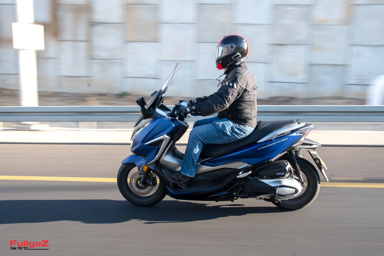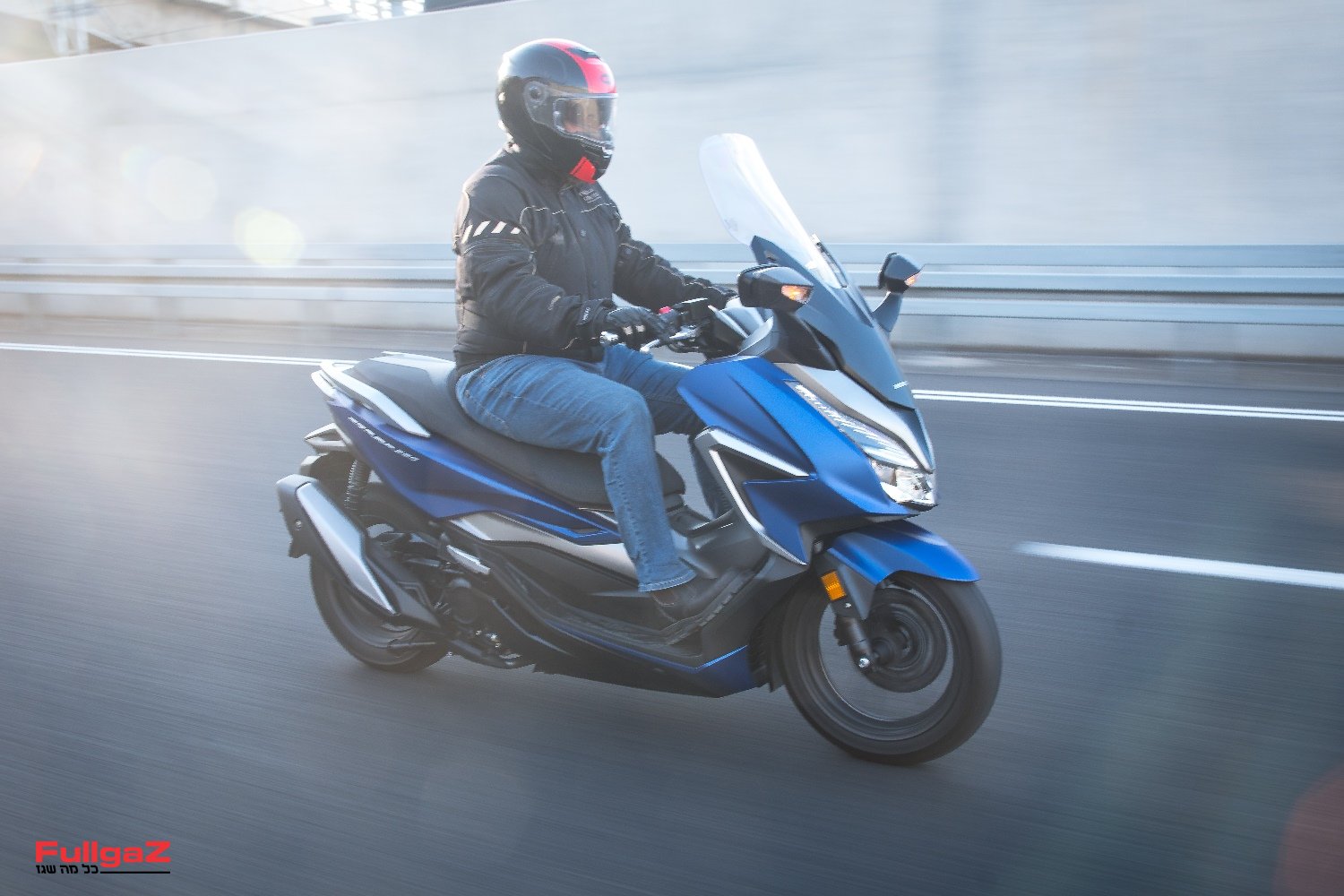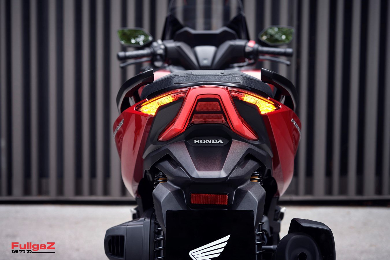 המושב החדש נוח יותר, כשניתן להחליף אותו במושב קומפורט לנוחות גבוהה יותר לאורך זמן. יש מקום רב יותר לרגליים, אבל השיפור המשמעותי נמצא בחזית: בהונדה ניפחו מעט את החזית, אבל בעיקר שיפרו את האווירודינמיות, וכעת זרימת האוויר מוסטת רחוק לצידי הכלי ומאפשרת לרוכב בועת ואקום סביבו. תוסיפו לזה משקף רוח חשמלי אשר במצב הגבוה שלו מספק מיגון רוח מעולה גם לגובה וגם לצדדים, ותקבלו סביבת רוכב נטולת רוח שמאפשרת נוחות גבוהה. זו אחת הנקודות המשמעותיות ששופרו בפורצה החדש של 2025, והיא הופכת את הפורצה ממקסי-סקוטר ספורטיבי למקסי-סקוטר ספורט-תיור – כלומר מרחיבה את טווח השימושים של הפורצה.