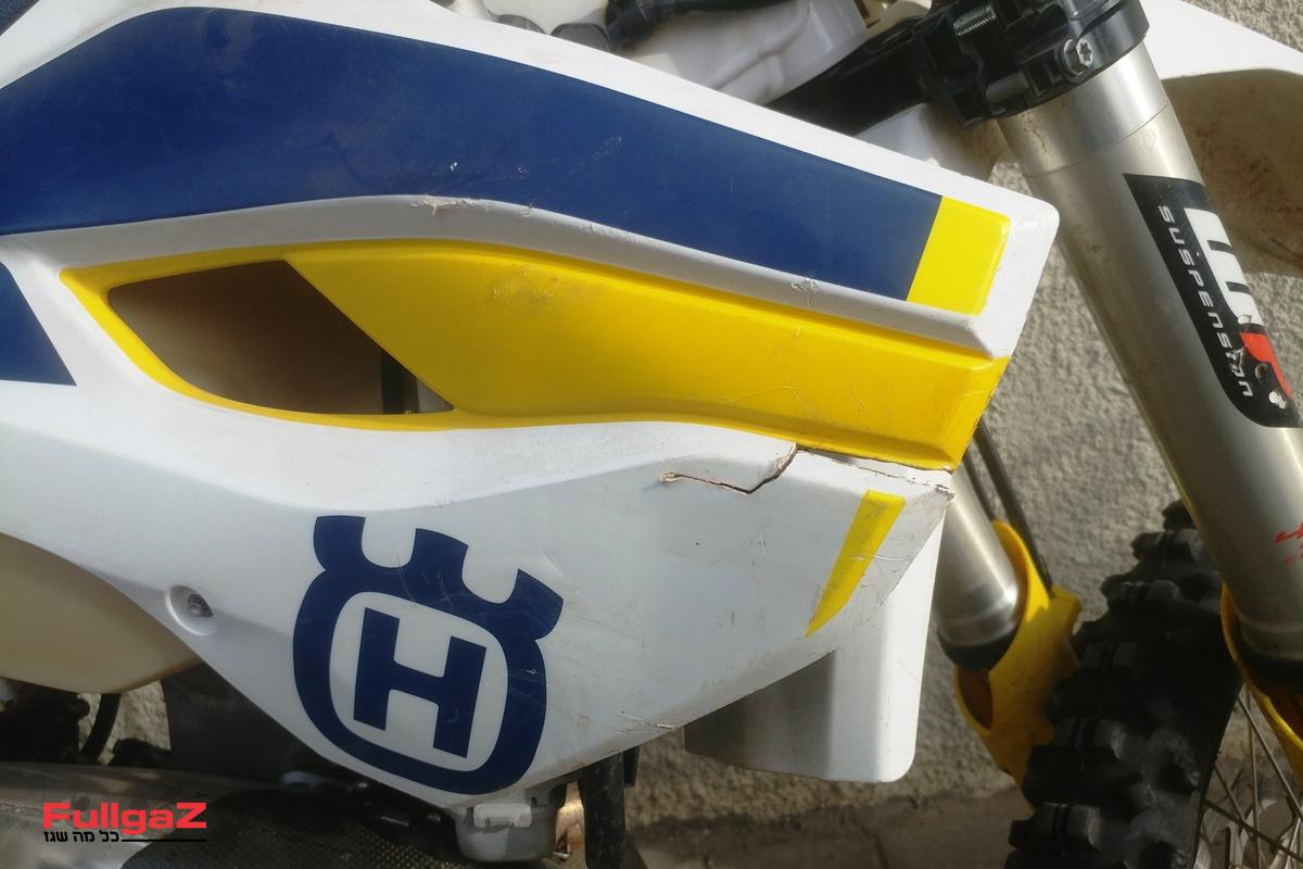 את האופנוע שלנו מצאנו בטרייד-אין של עופר-אבניר, יבואנית הוסקוורנה לישראל. האקזמפלר המדובר הוא הוסקוורנה TE250 שנת 2015, יד ראשונה, עם קצת יותר מ-200 שעות מנוע על השעון. נתונים טובים לאופנוע בן 3 וקצת. מבט מסביב לאופנוע הראה שמדובר בכלי שעבד יותר באקסטרים-אנדורו. העדויות בדמות שריטות רבות נראו בבירור על מגן הגחון, על הזרוע האחורית ועל הפלסטיקה.