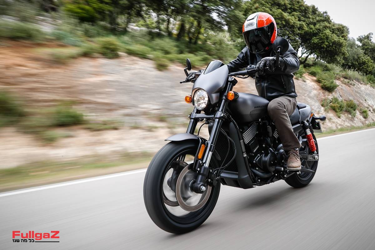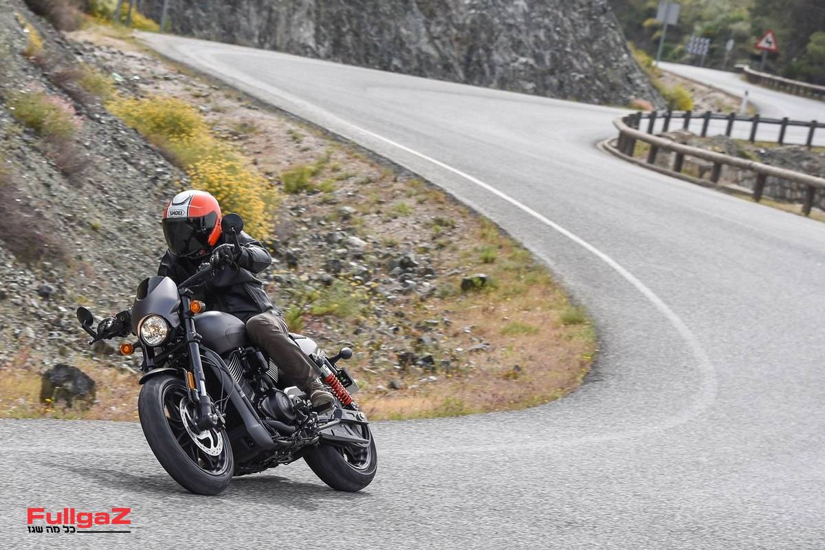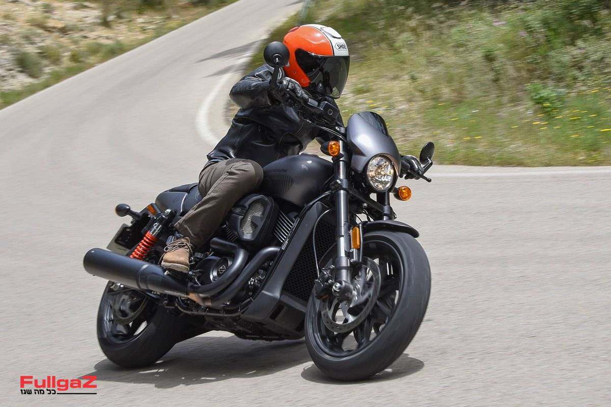 כמתחייב מהשם 'רוד', הוא לא רק צבוע בצבעי מט כהים, גם תנוחת הרכיבה מזכירה במשהו את הווי-רוד הגדול, עם מושב נמוך וכידון רחב ושטוח במיוחד ששולח את הידיים הרחק לפנים ויוצר כיפוף הארליסטי בגב. לרגע חלמנו על קסדת חצי ועל צמיג אחורי ברוחב 300 מ"מ, אבל הסתפקנו ב-160 הצנועים של הסטריט רוד ובקסדת ה-SHOEI הכתומה שמתאימה בול לצבעים של הארלי.