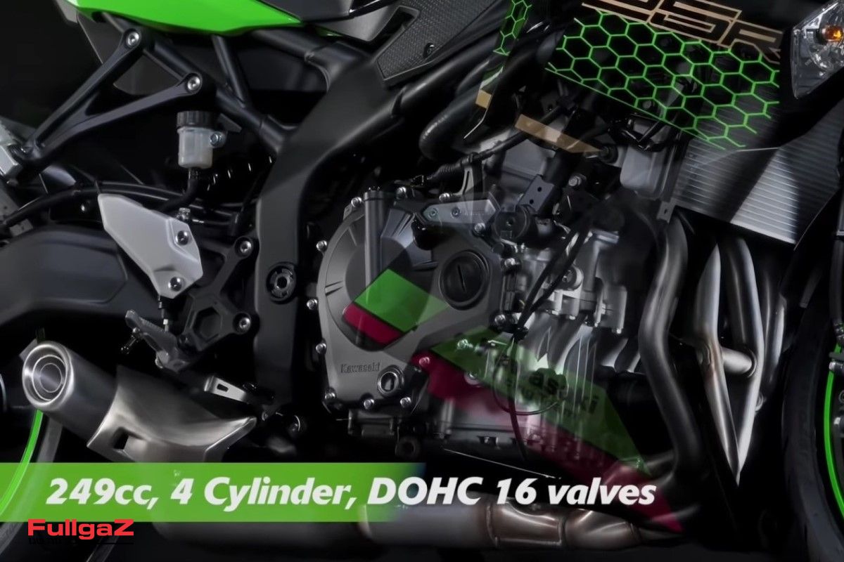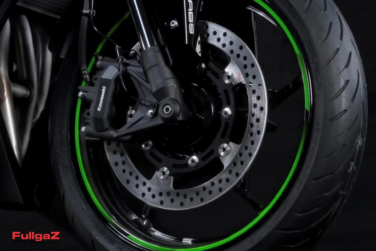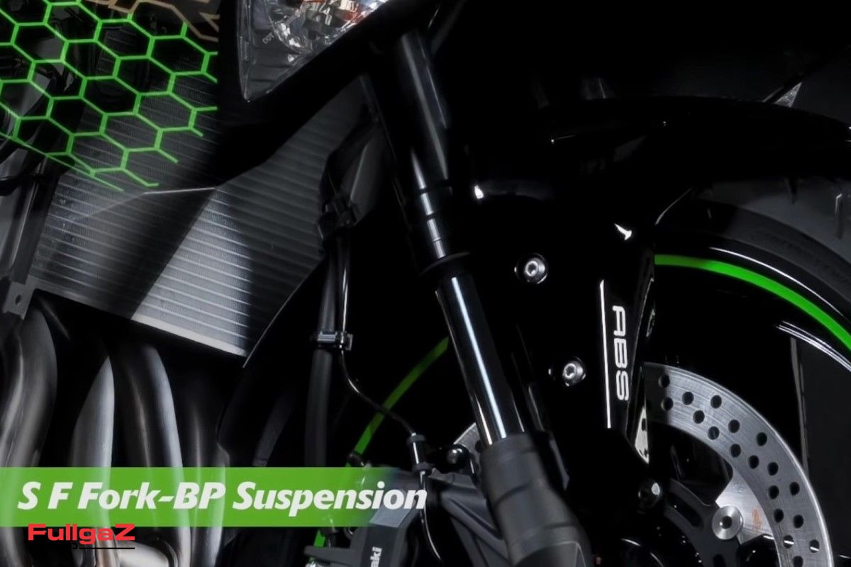בחלקו הקדמי נמצא מזלג של גדולים – השוואה SFF-BP (ר"ת Separate Function Fork – Big Piston), בדיוק כמו בנינג'ה 600. הבלם הקדמי מופעל על-ידי קליפר מונובלוק רדיאלי – לטענת קוואסאקי הראשון שמורכב על אופנוע 250 סמ"ק. החישוקים עטופים בדאנלופ ספורטמקס GPR-300 קרביים.
