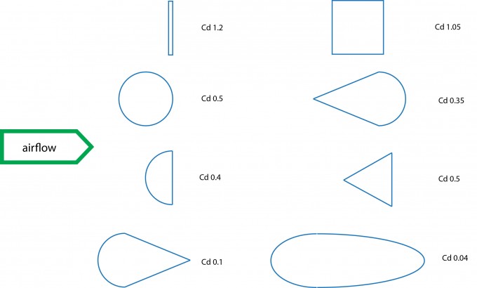 אם נפרק את נושא התנגדות האוויר לגורמים נמצא שדווקא הסיבה הראשונית – התנגדות האוויר הנוצרת כתוצאה משטח הפנים הכולל – הוא לא משהו שאפשר בכלל לשפר כל כך בקלות. שטח הפנים של אופנוע נובע בעיקרו מייעודו – סופרספורט, תיור, דו"ש, והתנוחה שבה הרוכב מקובע מכתיבה במידה רבה את השטח אשר 'מתנגש' באוויר. כיוון שאנחנו לא נעשים קטנים או נמוכים יותר, בתחום הזה לא צפוי שיפור, ואם מאוד מסקרן אתכם הרי שהמספרים ידועים למדי: לאופנועי סופרספורט אנחנו מדברים על אזור ה-0.6 מ"ר בזמן שאופנוע ספורט-תיור עם תנוחה די זקופה יכול להתקרב גם למטר רבוע שלם. כל עוד לא נאמץ שינויים קיצוניים בתנוחת הישיבה, המספרים הללו, שהם הבסיס לחישוב התנגדות האוויר, לא הולכים להשתנות. אבל מה לגבי הצורה שאנחנו נותנים לשטח הפנים הזה? כבר בראשית ימי התעופה היה מי שעשה מדידות וניסויים וראה מהר מאוד שאם על פלטה בשטח X נשים מעטה מעוגל מלפנים ומחודד מאחור, צורת הטיפה הקלאסית, הרי שהתנגדות האוויר של גוף כזה תהיה רק אחוזים בודדים מזו של הלוח המקורי.