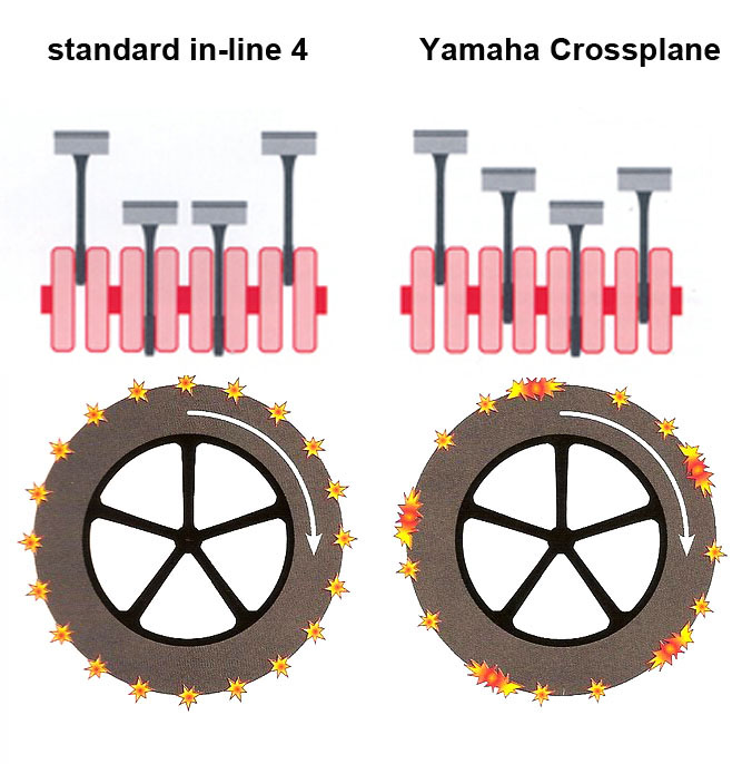 התחנות הללו לגמרי לא מקריות, וכמו הוכיחו עבור מי שטרח לעקוב שתצורת המנוע הנפוצה גם כיום של ארבע בשורה עם פיני טלטל בסידור של 180 מעלות אמנם מספקת אחלה אופנועי ספורט לשימוש יומיומי, אך כאשר מגיעים למסלול ועל האופנוע המשופר מאוד עם 200 כ"ס ויותר יושב רוכב ברמה עולמית, אספקת הכוח הסדירה תובעת מחיר בדמות בלאי מואץ של הצמיג. מי שצפה בעונות הראשונות של הב.מ.וו S1000RR בזירה וה-ZX10R של 2011 ו-2012 בסדרת הסופרבייק, לא יכול שלא לזכור איך שני האופנועים הללו נמצאו לעתים קרובות מלפנים בתחילת מרוצים, רק כדי לדעוך בזמני ההקפה שלהם לקראת סיומם.