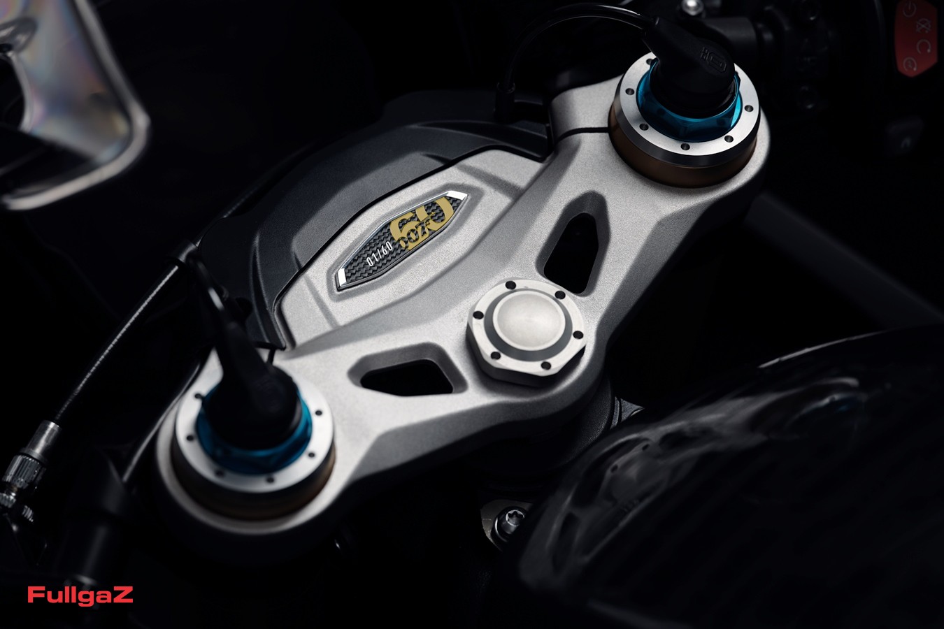 הבולמים הם סמי-אקטיביים חשמליים של אוהלינס מדגם Smart EC 2.0, והבלמים הם הדור האחרון של הברמבו Stylema עם קליפרים מונובלוק וצמד דיסקים צפים בקוטר 320 מ"מ מלפנים. על חישוקי ה-17″ מגיעים צמיגי פירלי דיאבלו סופרקורסה SC2 V3.