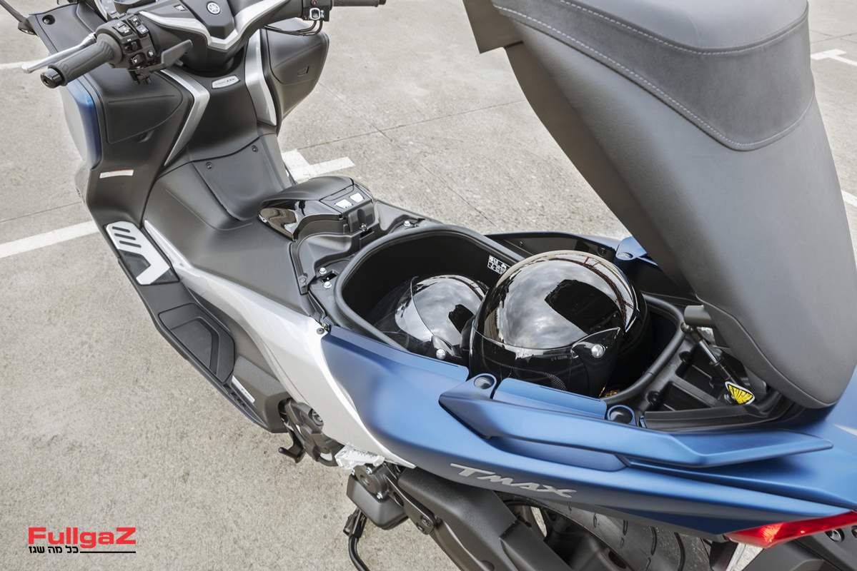 נפח תא האחסון שמתחת למושב מוגבל בשני הכלים בשל מבנה השלדה והמנוע, ובשניהם הוא מכיל קסדה מלאה ועוד מקום לתיק גב קטן. לשני הכלים גם צמד תאי כפפות קטנים, כשבשניהם שקע טעינה לטלפון הנייד.