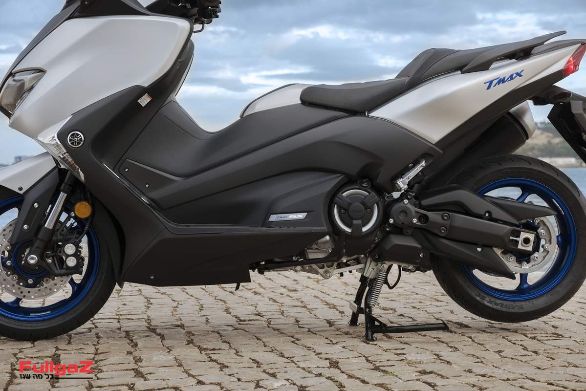 כל כך קיווינו שהטימקס יגדל ל-700-750 סמ"ק, אבל בימאהה בחרו להישאר עם מנוע הטווין המקבילי שלהם בנפח 530 סמ"ק. הוא לא השתנה, למעט מערכות העזר – מערכת הזרקה, מזרקים, מערכת פליטה, תיבת אוויר, בית תרמוסטט, מסנן שמן וגם הווריאטור – למשל עם רצועת קרבון חדשה וצרה יותר. היתרון: עם 46 כ"ס הוא עדיין מתאים לרישיון A1.
