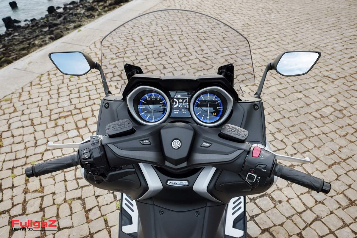 הזרקת דלק ו-ABS זה כבר מזמן סטנדרט, אבל השנה הטימקס מקבל עוד כמה תופיני אלקטרוניקה. יש בקרת החלקה כסטנדרט, ואם אתם חולי דריפטים בכיכרות אז שתדעו שהיא ניתנת לניתוק. יש גם מצערות חשמליות – לראשונה בקטנועים של ימאהה, ויש לוח שעונים חדש שכולו מסכי TFT צבעוניים והוא נשלט במלואו ממתגים על הכידון. מפתח ה-KEYLESS משתדרג גם הוא, ומעתה ניתן להתניע ולדומם את הטימקס ישירות מהשלט, ואם אתם יושבים בבאר ורואים מישהו בחוץ עולה על הטימקס שלכם ונוסע, לחיצה על כפתור בשלט תדומם את המנוע.