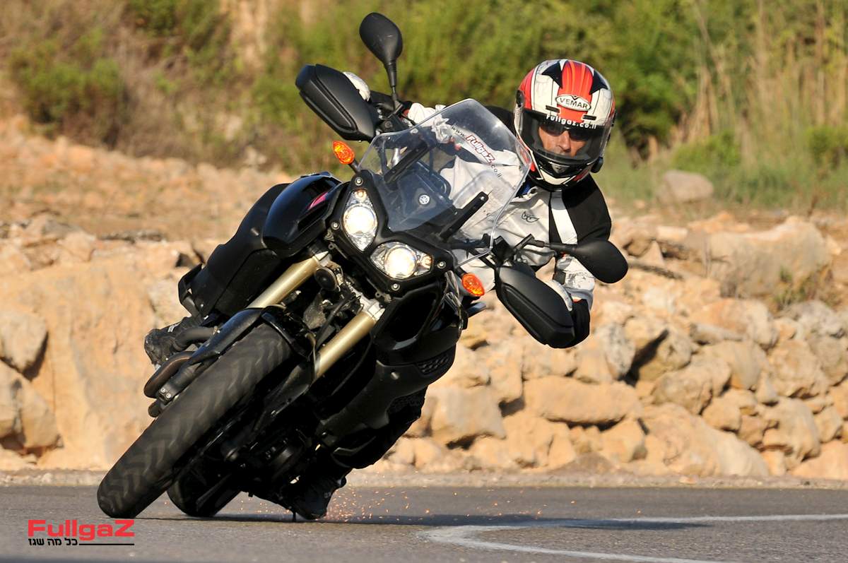 בדרך אלון ובכביש העלייה למבוא חמה, צלחות ספגטי שהתקשו לכדי כביש, הסופר-טנרה מייצר רגשות מעורבים. על ההיגוי האיטי אין תלונות, זה פחות מורגש בפניות שחלקן נעשות בהילוך ראשון, והתכונה הזו גם מזמנת רכיבה מעורבת יותר מצד הרוכב. המתלים עושים עבודה טובה והאופנוע מגיב מצוין לכניסה לפניות על הבלמים. כל כך טוב הוא מגיב עד שבדרך אלון, שהייתה מאוד חלקלקה בשעות הבוקר, אני נכנס לפניות בהחלקה בסגנון סופרמוטו ופשוט יוצא על הגז כשהכידון הענק מופנה לצד במה שמרגיש כמו ניצחון בתחרות דריפטים. מערכת בקרת ההחלקה נמצאת על מצב 2 והיא מאפשרת לא מעט החלקה של האחורי בשני ההילוכים הראשונים כל זמן שחלקים על הגז. זה מפתיע מספיק בשביל שאבדוק פעמיים אם היא אכן פועלת.