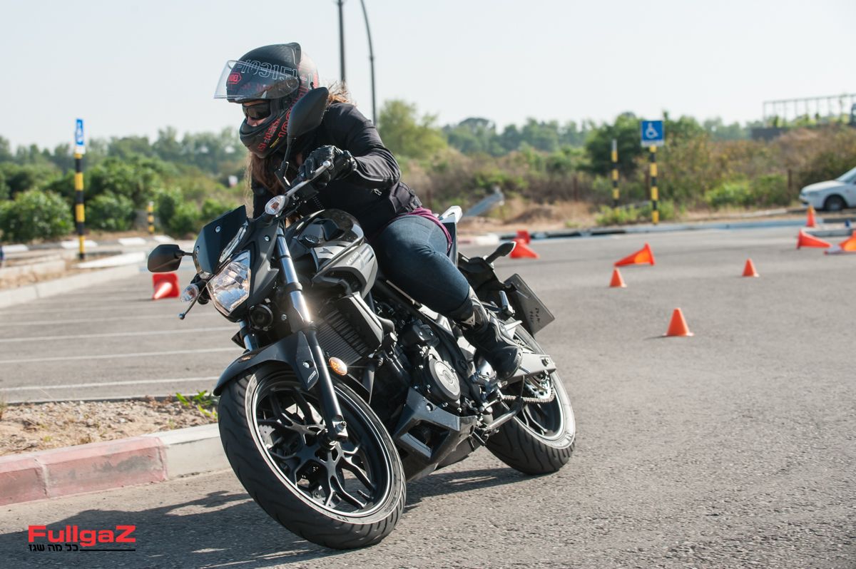 בין הקונוסים המתפתלים הוא הרגיש בבית. חלקות התפעול, הידידותיות והנוחות הכללית אפשרו לי לתפור את המסלול שוב ושוב בלי להרגיש במאבק של אופנוע עתיר נפח ב'מסלול' ארצישראלי עתיר מפרצי חניה. באין מסלול אמיתי, לרכב עם אופנוע קטן נפח זה הרבה יותר הדבר האמיתי מאשר להיכנס לשם עם ליטר.