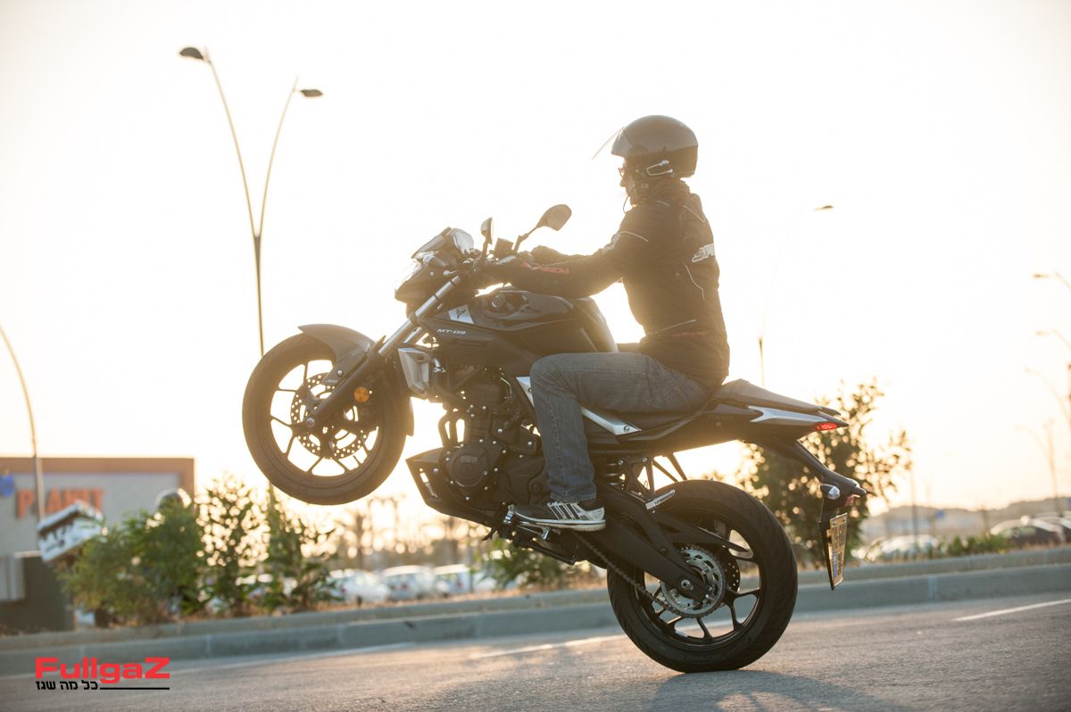 את המנוע אהבנו ב-R3, ואנחנו אוהבים אותו פה. הקונספט הזה של מנוע טווין לנפחים האלה יוצר מנוע חלק משמעותית מהסינגלים המתחרים, ונעים מאוד להשתמש בו. הוא גמיש באופן יחסי לנפח, כך שהוא שימושי, ואת מלוא הסוסים מקבלים לקראת 11 אלף סל"ד, תכונה שיוצרת תחושה ספורטיבית. המהירות המקסימלית נושקת ל-200 קמ"ש, אבל בניגוד ל-R3, שם אפשר להתכנס מאחורי המשקף ולהיות מוגנים מהרוח – ב-MT העירום המהירויות האלה הרבה פחות נוחות. רכיבה על 120-130 קמ"ש מציבה את האופנוע בדיוק בטווח הנוחות שלו ושל הרוכב.