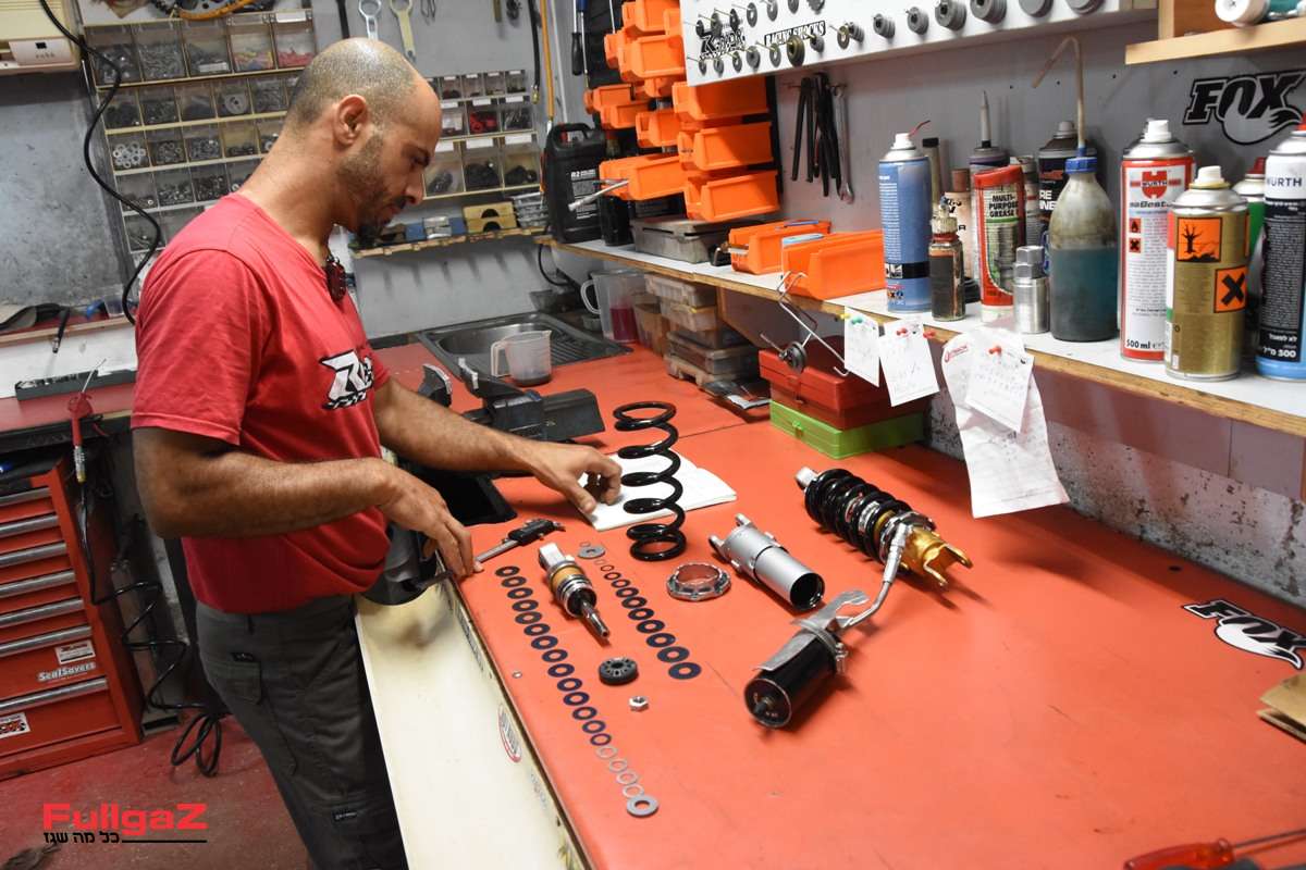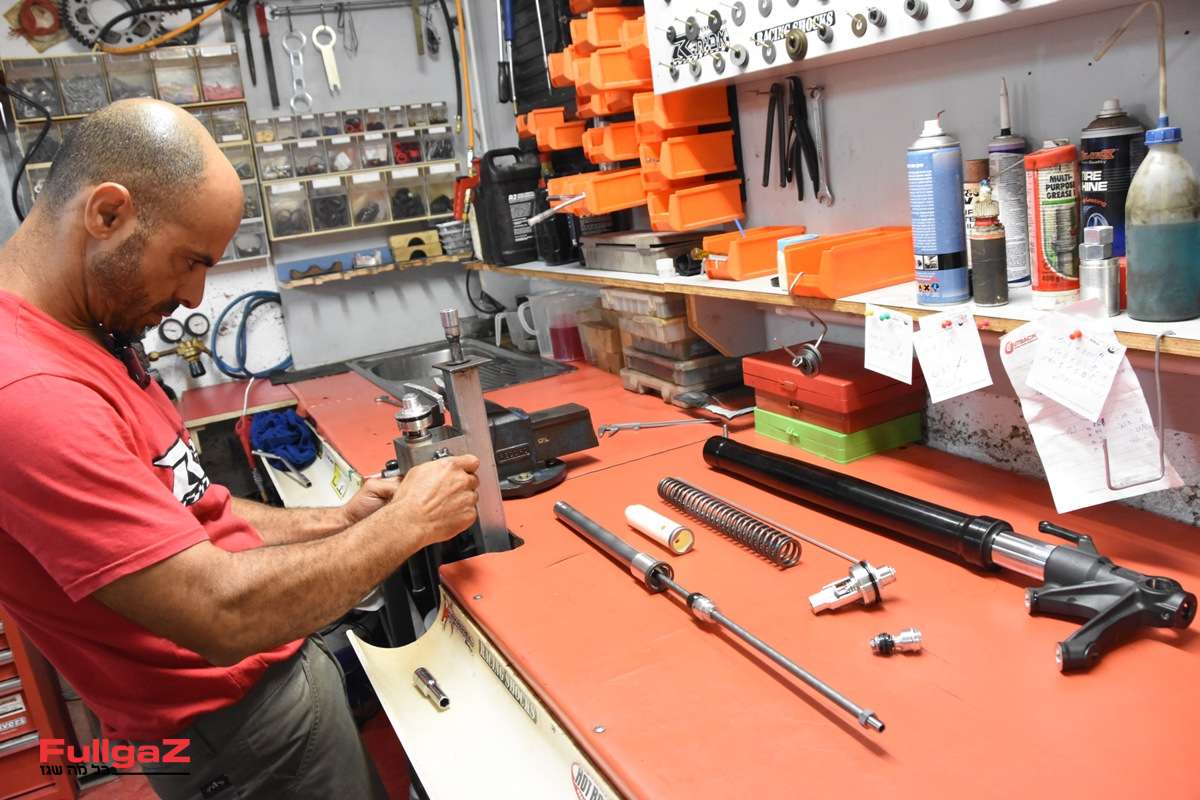 אחרי מדידות של הרוכב והבנה של סגנון הרכיבה שלו, אביתר ביצע 3 פעולות: הוסיף עומס קפיץ בשני הטלסקופים על ידי ספייסרים חיצוניים, החליף את השמן לאחד איכותי במיוחד של FOX, והחשוב ביותר – ביצע עבודה כירורגית על שסתומי שיכוך הכיווץ וההחזרה שבתוך הקארטרידג' לפי הנוסחה שבנה, כולל כמובן הוספת דיסקיות שיכוך לבוכנה.