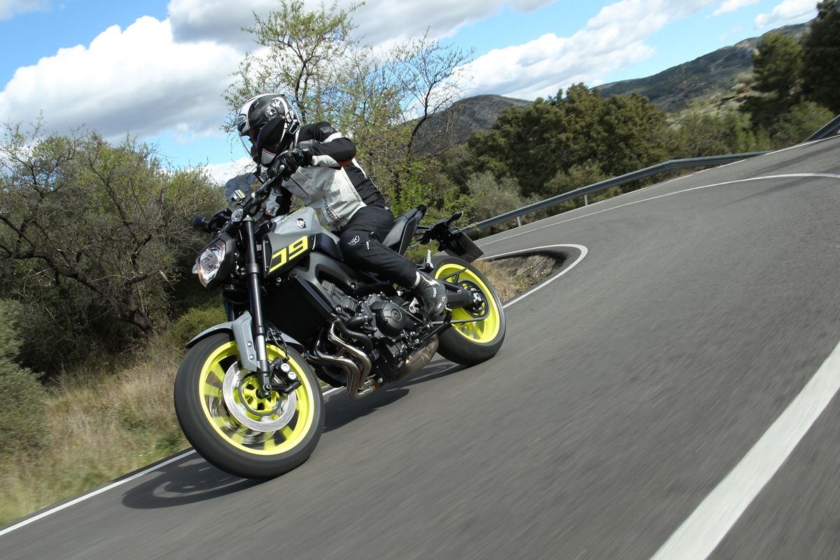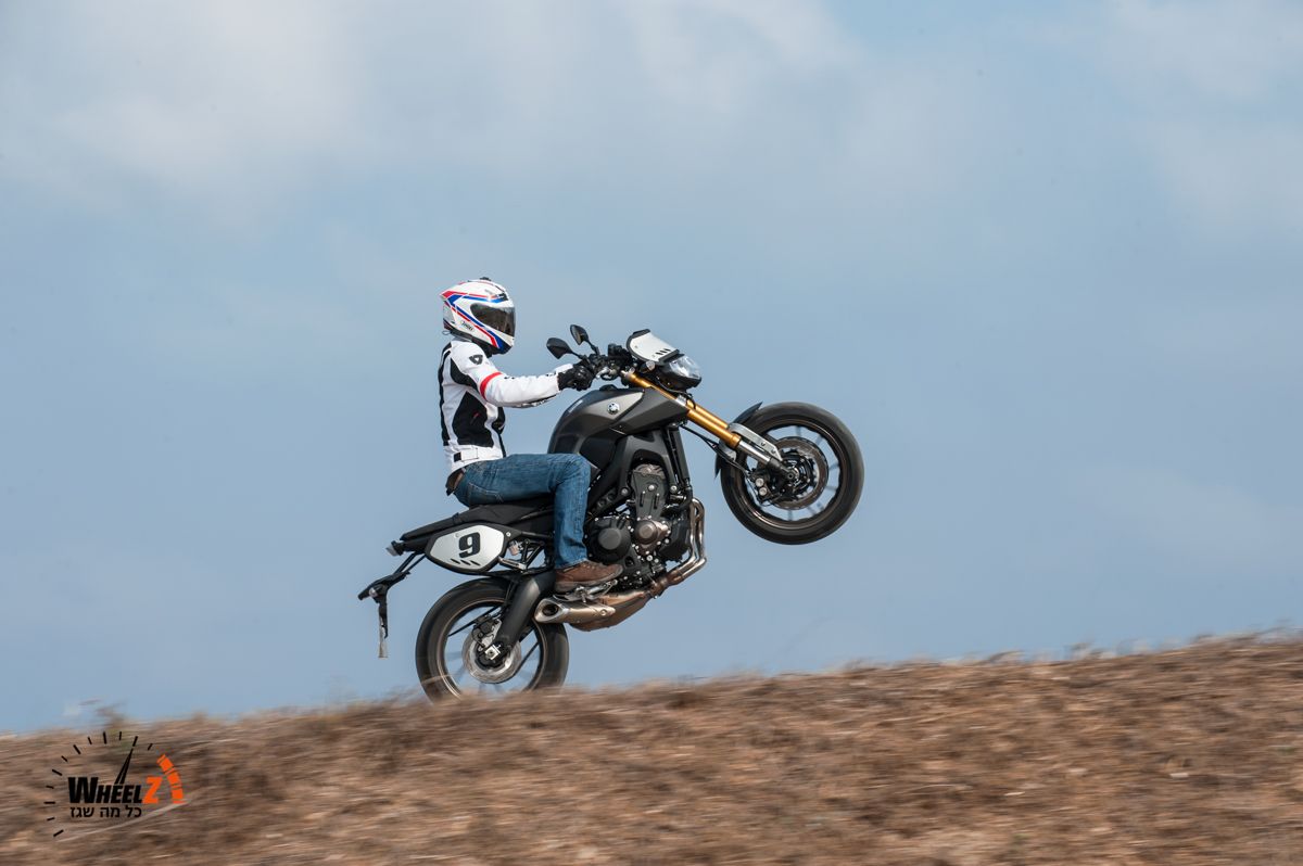 המקום היחיד שהרגשנו שחסכו עלינו באופנוע הזה הוא הבולמים, והם ללא ספק צוואר הבקבוק של הביצועים הדינמיים ב-MT-09. אבל אחרי הכל מדובר בחבילה מצוינת שנותנת יופי של תמורה למחיר. במיוחד לאור העובדה שהוא מגיע כסטנדרט עם 3 מצבי ניהול מנוע וכן בקרת החלקה, ולישראל הוא מגיע כסטנדרט עם מערכת ABS, שלצערנו לא ניתנת לניתוק. את בקרת ההחלקה בדקנו והיא עובדת היטב – במצב 2 מתערבת מיד בתחילת ההחלקה, ובמצב 1 מאפשרת החלקה קטנה וגם ווילי'ז נמוכים. אחרי שהבנו שהיא עובדת – ניתקנו אותה ונהנינו מיופי של ווילי'ז על האספלט הספרדי המשובח שצפונית לאלתיאה.