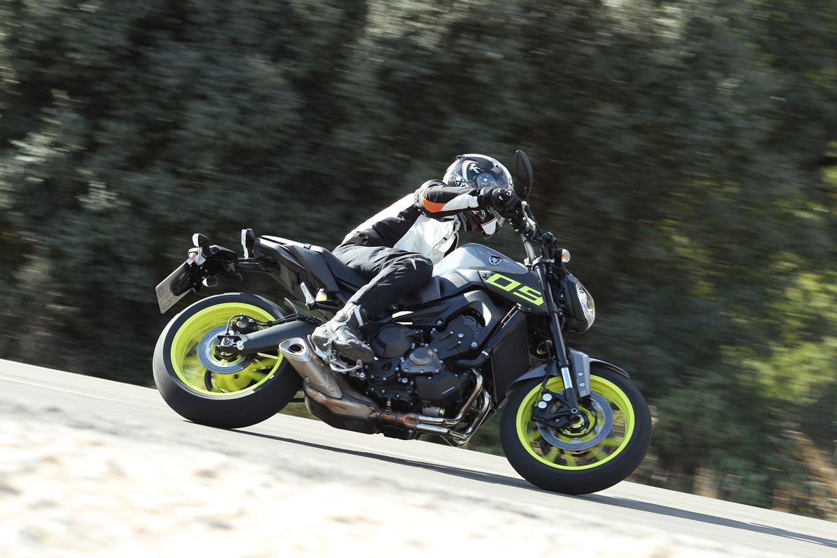 בבסיס ה-MT-09 יש מנוע טריפל (3 צילינדרים) שמפיק 115 כ"ס ו-8.9 קג"מ, והוא שוכן בתוך שלדת יהלום. המתלים פשוטים יחסית – מלפנים בולמים הפוכים ומאחור בולם יחיד, כשבשני הצדדים יש אפשרות לכיוון עומס קפיץ ושיכוך החזרה. הגלגלים במידות ספורטיביות, והבלמים מלפנים משלבים קליפרים רדיאליים על צמד דיסקים בקוטר 298 מ"מ. ואי אפשר שלא לדבר על העיצוב – למרות שכבר התרגלנו אליו בשנתיים האחרונות. בימאהה בנו את ה-MT-09 כקונספט המשלב בין אופנוע נייקד לאופנוע היפרמוטו – אם תרצו עוד שלב באבולוציה של ההיפרמוטואים הגדולים וטשטוש הגבולות בינם לבין נייקדים רגילים.