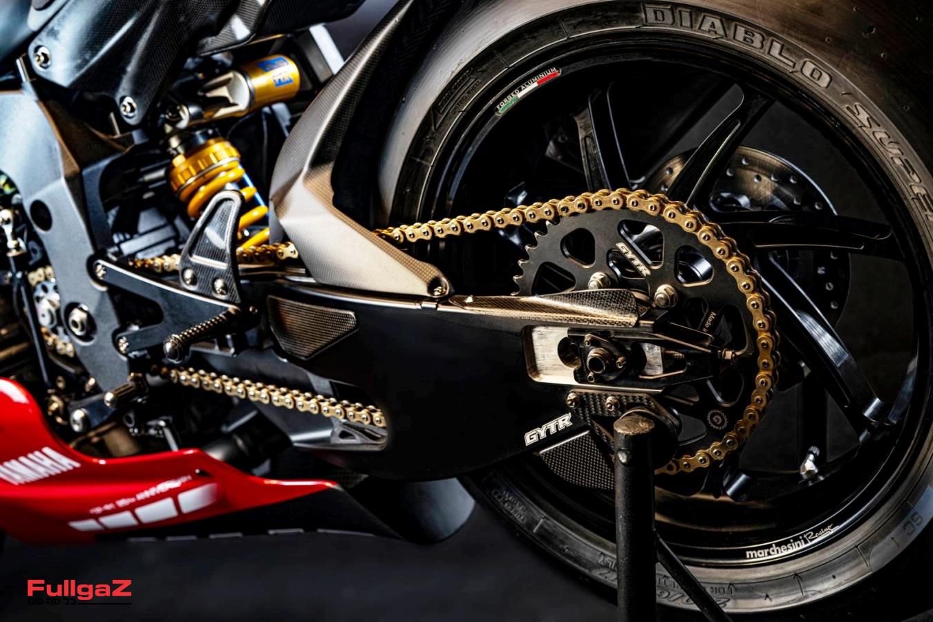 ההינע הסופי עם שרשרת מרוץ GYTR R-Series 520 וגלגלי שיניים במידה 520, מה שמוריד משקל בלתי מוקפץ. יש צינורות בלימה מצופים פלדה שזורה עם רפידות ברמבו מסוג Z04. ה-R1 GYTR מגיע ללא מערכת ABS, כשיש פלאג ביטול לקונקטור המקורי. יש מערכת ריר-סט (רגליות רוכב הכוללות מנופי בלם והילוכים) מאלומיניום מכורסם, מתכווננת באופן מלא, כשניתן להפוך את רגלית ההילוכים לעבודת מסלול (הילוך ראשון למעלה, כל השאר למטה). לגרסת ה-GYTR אין מפתח כלל, כשפתח התדלוק נפתח בפתיחה מהירה למרוצים, ואת מתג ההצתה עם מפתח מחליף מתג ON/OFF על הכידון.
