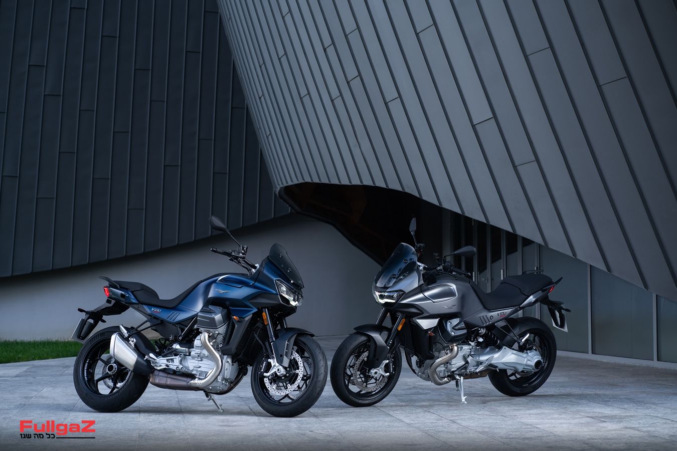 נתחיל עם ה-V100 מנדלו, שהוצג בדיוק לפני 3 שנים עם מנוע מקורר המים הראשון של מוטוגוצי שמגיע בתוך אריזה של אופנוע ספורט-תיור מודרני וכולל גם גרסת S עם בולמים חשמליים סמי-אקטיביים של אוהלינס ואלקטרוניקה נוספת. עדכוני יורו 5+ מגיעים למנוע הווי-טווין עם גל ארכובה אורכי וזווית של 90° בין הצילינדרים, גל-זיזים עילי כפול ו-8 שסתומים. נפח המנוע עומד על 1,042 סמ"ק, והמנוע ממשיך להפיק 115 כוחות סוס ו-10.6 קג"מ, כאשר 90% מנתון המומנט זמין כבר מ-3,500 סל"ד. יש מצמד רטוב מופעל הידראולית עם שיפורים חדשים בתיבת ההילוכים, והנעה דרך גל הינע. גם חדש הוא מגן רדיאטור שנועד להגן בעיקר מאבני אספלט מתעופפות.
