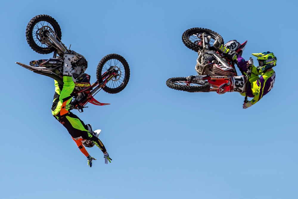 7 רוכבי פריסטייל מוטוקרוס הגיעו ארצה למופע. הם אמנם לא רוכבי הטופ של הסצנה כמו אלו המתחרים ברד-בול X-פייטרס, אבל הרמה בהחלט גבוהה בכל קנה מידה. שישה מהרוכבים מופיעים על גבי אופנועים – קית' סיירס, טוד פוטר, ג'יימס קארטר, ניק דאן, בילי קוהוט וסת' ביטון, והשביעי – קודי אלקינס – על גבי טרקטורון. את הכלים הם הביאו עימם, כך שמדובר בכלים שעליהם הם מתאמנים ומופיעים באופן קבוע.