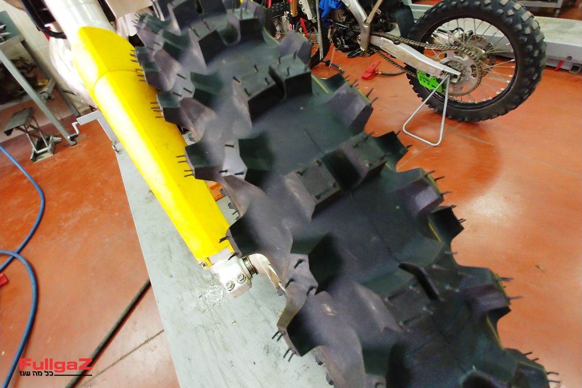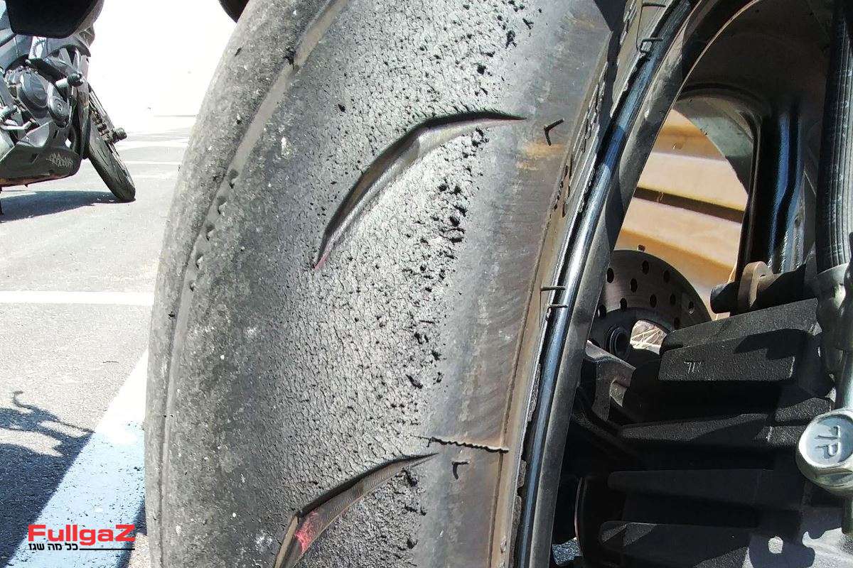 כך נראה הצמיג הקדמי אחרי יום מסלול בפצאל