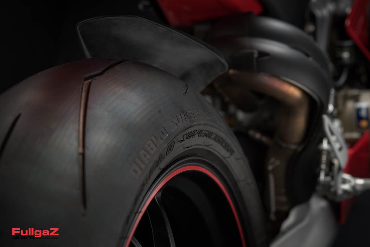 מה עוד מעניין? ובכן, יש צמיג אחורי במידה חדשה באופנועים סדרתיים – 200/60ZR17. הצמיג הזה פותח על-ידי דוקאטי ופירלי, הוא מגיע כרגע רק בדגם דיאבלו סופרקורסה SP ו-SC, כשהמידה הזו נלקחה ישירות ממרוצי אליפות העולם בסופרבייק, שם היא מגיעה על צמיגי הסליקס של פירלי. לטענת דוקאטי, החתך הגבוה יותר מגדיל את שטח המגע של הצמיג עם האספלט בזמן הטיה, ועל-ידי כך מגביר את האחיזה וכפועל יוצא את מהירות הפנייה.