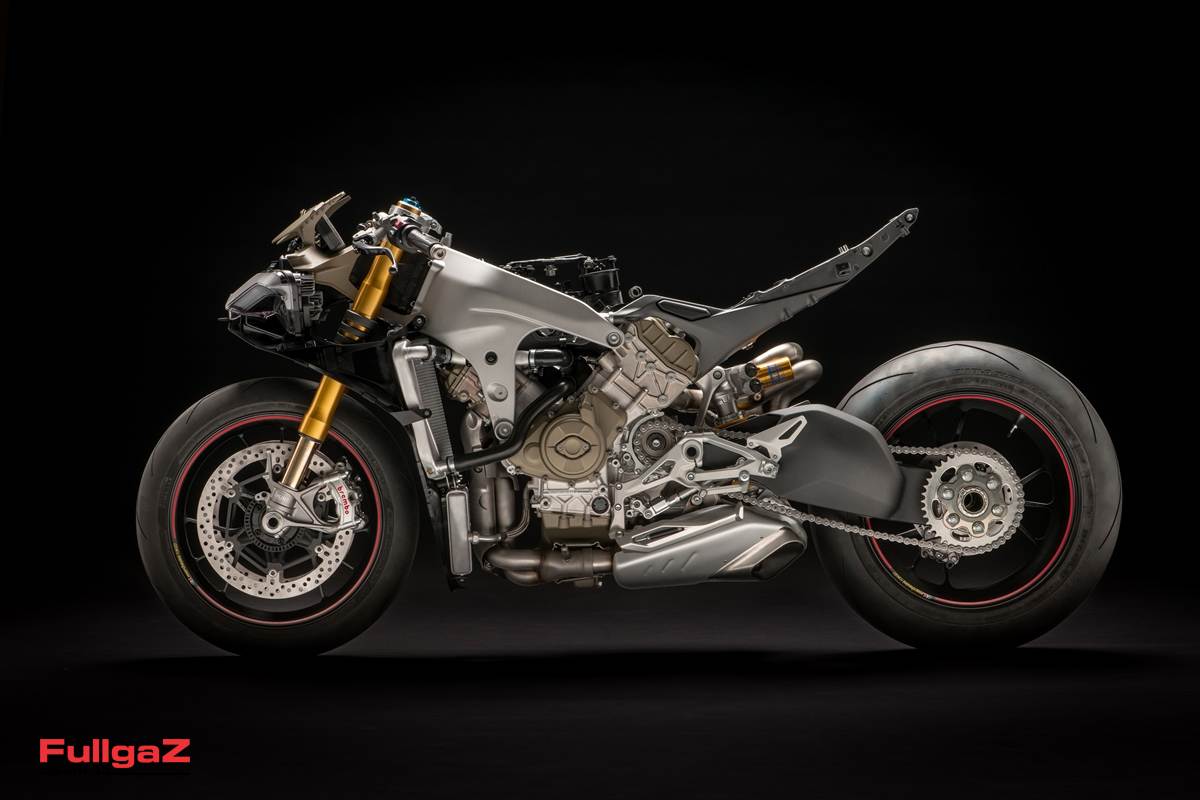 אחד האלמנטים המעניינים במנוע ה-V4 החדש הוא העובדה שגל הארכובה מסתובב הפוך, כלומר נגד כיוון סיבוב הגלגלים. סידור זה קיים ברוב אופנועי ה-MotoGP, ויש לו שני יתרונות עיקריים: הראשון הוא הפחתת האפקט הג'יירוסקופי של האופנוע, מה שגורם לו לפנות טוב יותר, והשני הוא הפחתת מומנט האינרציה, מה שגורם להצמדה טובה יותר של הגלגל הקדמי בתאוצה, כלומר פחות נטייה לעלות לווילי, ובדיוק הפוך בזמן בלימה ובלימת מנוע – כלומר פחות נטייה להרים את הגלגל האחורי בבלימה. במילים אחרות – יותר אחיזה, יותר יציבות, והתנהגות זריזה יותר.