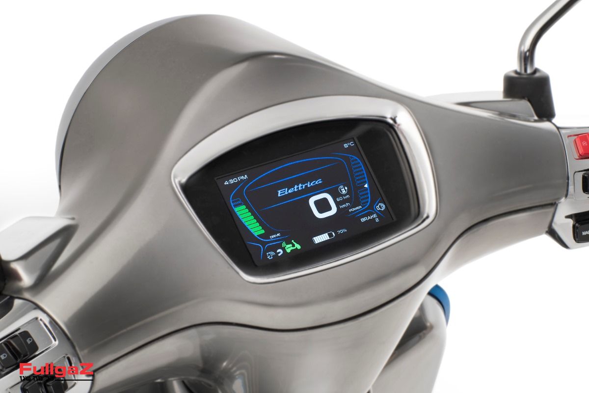 הוסספה החשמלית מגיעה עם מסך TFT צבעוני בגודל "4.3, שמעבר לנתונים הכלליים כמו מדי מרחק קבוע ומתאפס, מצב סוללה וטווח רכיבה, מציע גם חיבור לטלפון הנייד והצגת הודעות ושיחות על המסך. עם מערכת התקשורת של פיאג'ו ניתן גם לתפעל את הטלפון הנייד על-ידי פקודות קוליות, דרך המסך. נחמד מאוד.