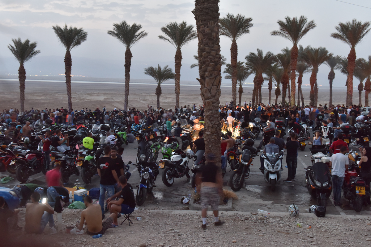רכבו שם אופנועים וקטנועים מכל הסוגים. אופנועי 125 סמ"ק (הבחור עם ההאסקי TE125 והבחורה עם הק.ט.מ דיוק 125 – אתם הגיבורים שלי ברכיבה הזו!), עד אופנועי ספורט. קטנועים בכל הנפחים, עד חבורות הארליסטים. רוכבים צעירים ומבוגרים, רוכבים ורוכבות, יהודים וערבים – כולם רכבו יפה, פשוט כי אפשר. יש אופנוע, יש חבר'ה, יש כבישים, יש ערב מיוחד – אז רוכבים למצדה. כמו בשנים הראשונות של הרכיבה למצדה, כשפשוט קבעו, ונסעו. ולמה לא בעצם? כבר כתבתי פעם – "יש דשא – יש משחק", וכאן זה הכי נכון שיש.