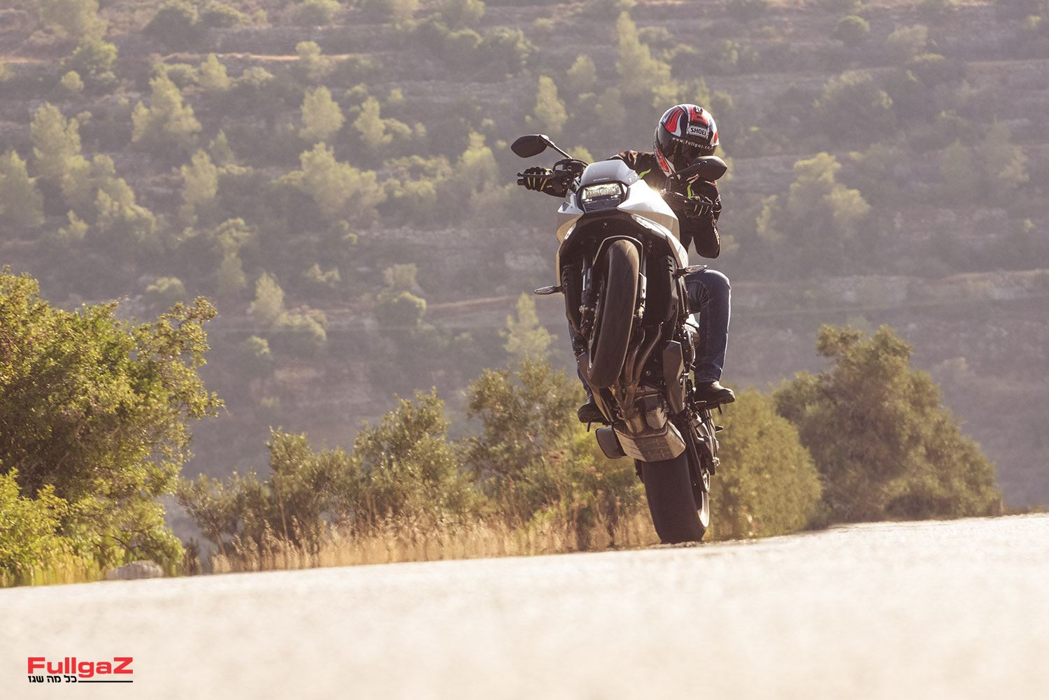 מנוע הדורסודורו, מאידך, מציע שפע של מומנט כבר מסל"ד אפסי, ופתיחת מצערת אגרסיבית תניב מכת כוח שתאיים לנתק את הגלגל הקדמי מהאספלט בהילוכים הנמוכים. אם שמים את מצב ניהול המנוע על 'ספורט', אז גם התגובות חדות מאוד וצריך להיות עדינים מאוד על המצערת. במצב 'תיור' התגובות מתונות יותר, אבל עדיין דורשות מיומנות בתפעול מצד הרוכב, פשוט מפני שפתיחת מצערת גסה מדי תאיים לנתק את האחיזה מהגלגל האחורי. בקרת האחיזה, אגב, תרסן את ההחלקה ותייצב את האופנוע.