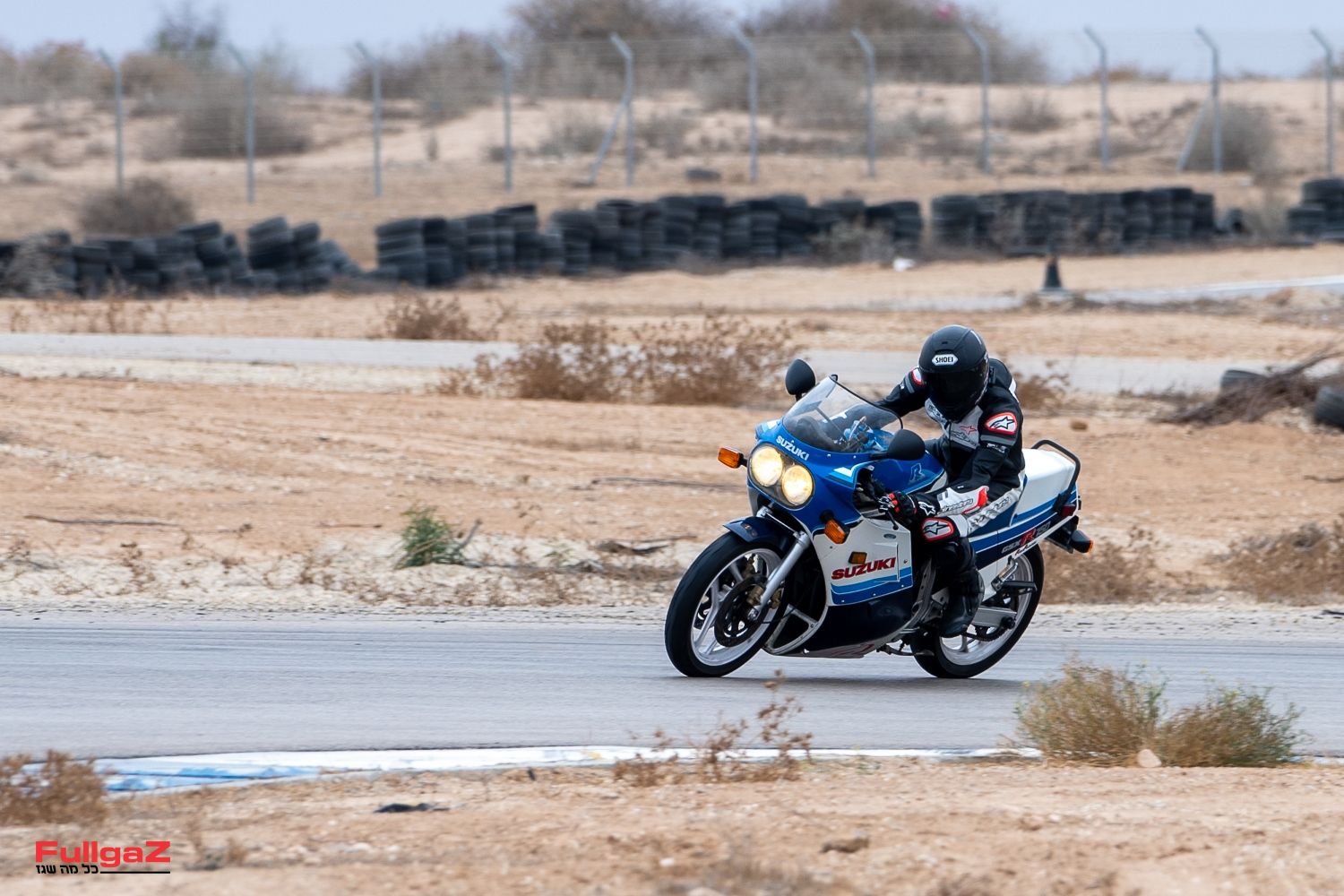 רכיבה על ה-R המקורי במסלול המרוצים מוטורסיטי היא זריקה אגרסיבית לעבר. האופנוע שעליו רכבנו – באירוע מיוחד שהוקדש כל-כולו לשושלת הג'יקסר – משוחזר באופן מושלם, והוא הדבר הקרוב ביותר לאופנוע של 1985 שאפשר למצוא. הוא מניע בנגיעה בסטרטר ומגיב מצוין למצערת בגלל הקרבורטורים המכוונים, הוא יושב על בולמים וצמיגים רעננים, והתחושה היא של אופנוע ישן-חדש. ולמרות זאת, קצת מפחיד לרכוב עליו על המסלול – גם כי המכלולים בסופו של דבר בני 40 שנה, בטכנולוגיה פרה-היסטורית, וגם כי זה אופנוע של אדם פרטי, והדבר האחרון שאני רוצה לעשות זה להחליק עם האופנוע.