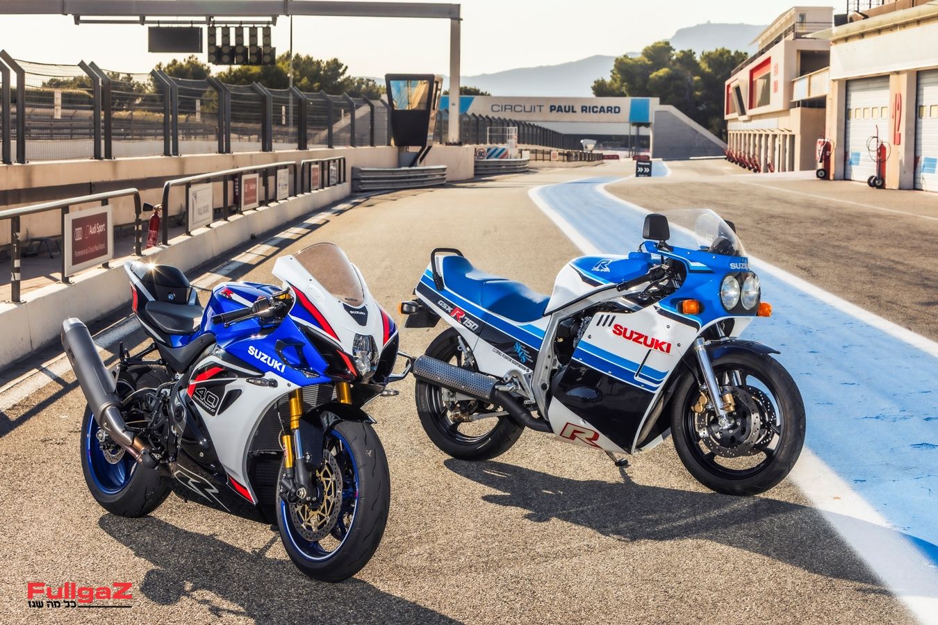 סוזוקי GSX-R750 של 1985 לצד הנין של הנין 40 שנה אחרי