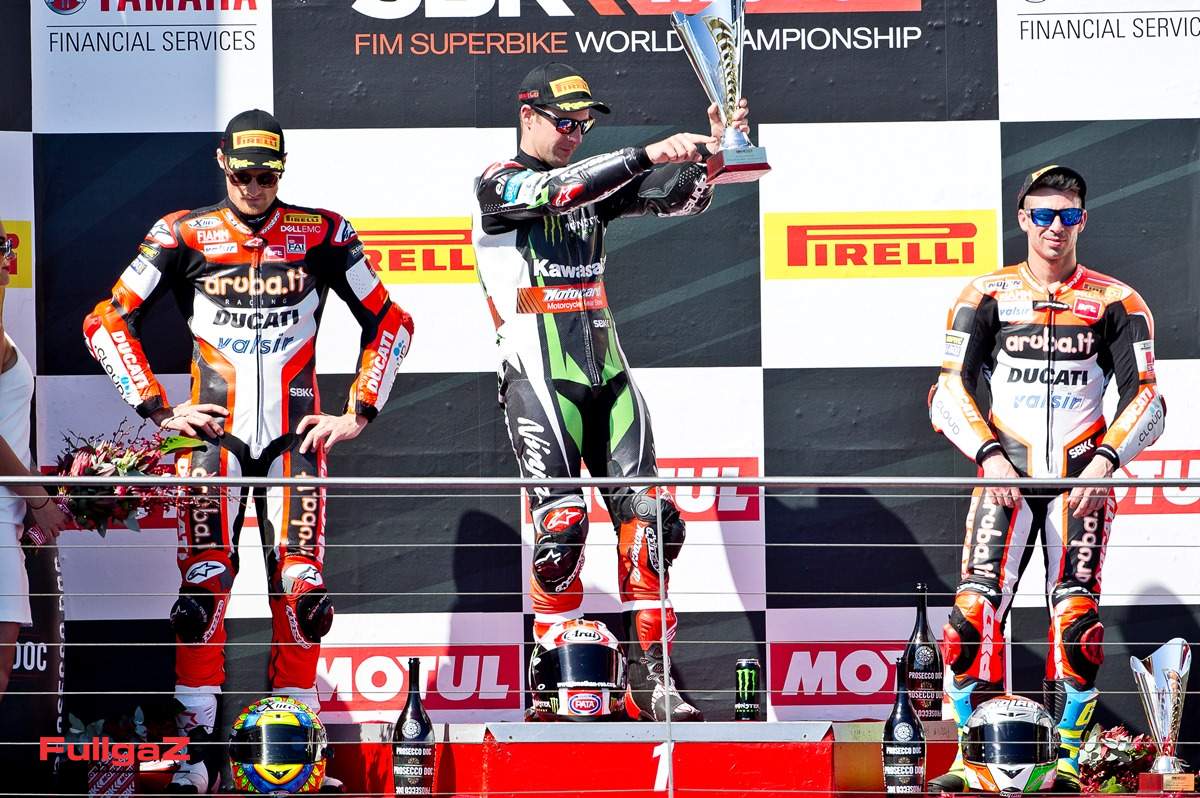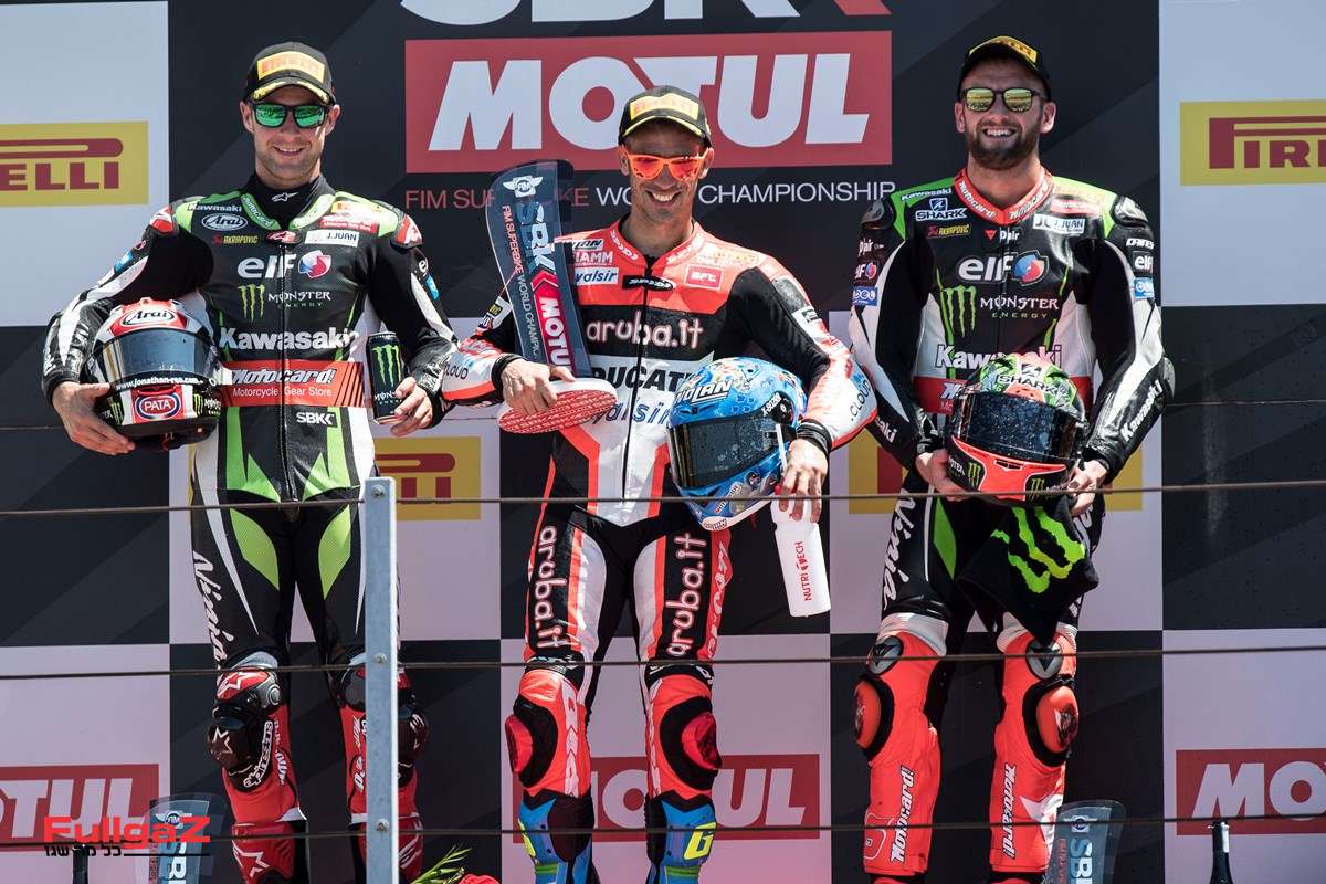 ראשון, 13:36 – מלאנדרי חוצה ראשון את קו הסיום, 1.1 שניות לפני ראיי שרק בקושי מצליח להדוף את סייקס ולסיים לפניו. צמד רוכבי קוואסאקי משלימים פודיום שני לכל אחד בסוף השבוע הזה, בזמן שעבור מלאנדרי מדובר בלא פחות מהישג, כשהוא משיג ניצחון ראשון בעונה בה הוא חוזר לסדרה, באיטליה, על גבי אופנוע איטלקי – ממש כמו שעשה דוביציוזו לפני שבועיים במוג'לו. הניצחון של מלאנדרי הוא ה-100 במספר של רוכב איטלקי באליפות הסופרבייק העולמית, מאז החלה בשנת 1988.