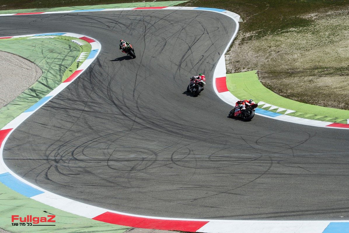 שבת, 13:23 – מייקל ואן דר מארק שזינק ממקום 5 מוביל את המרוץ כמעט מתחילתו, כשאחריו ראיי ודיוויס שמחליפים ביניהם מקומות. ההולנדי שפתח פער של מעל שנייה בחוד מגלה שראיי מצליח לצמצם ממנו את הפער, אך כשל בצמיג האחורי גורם לו להתרסק כשנותרו פחות מ-7 הקפות לסיום ולצאת מהמרוץ. בפירלי עדיין חוקרים את הסיבה לכשל שייתכן ומנע מ-ו.ד.מ ניצחון סופרבייק ראשון.