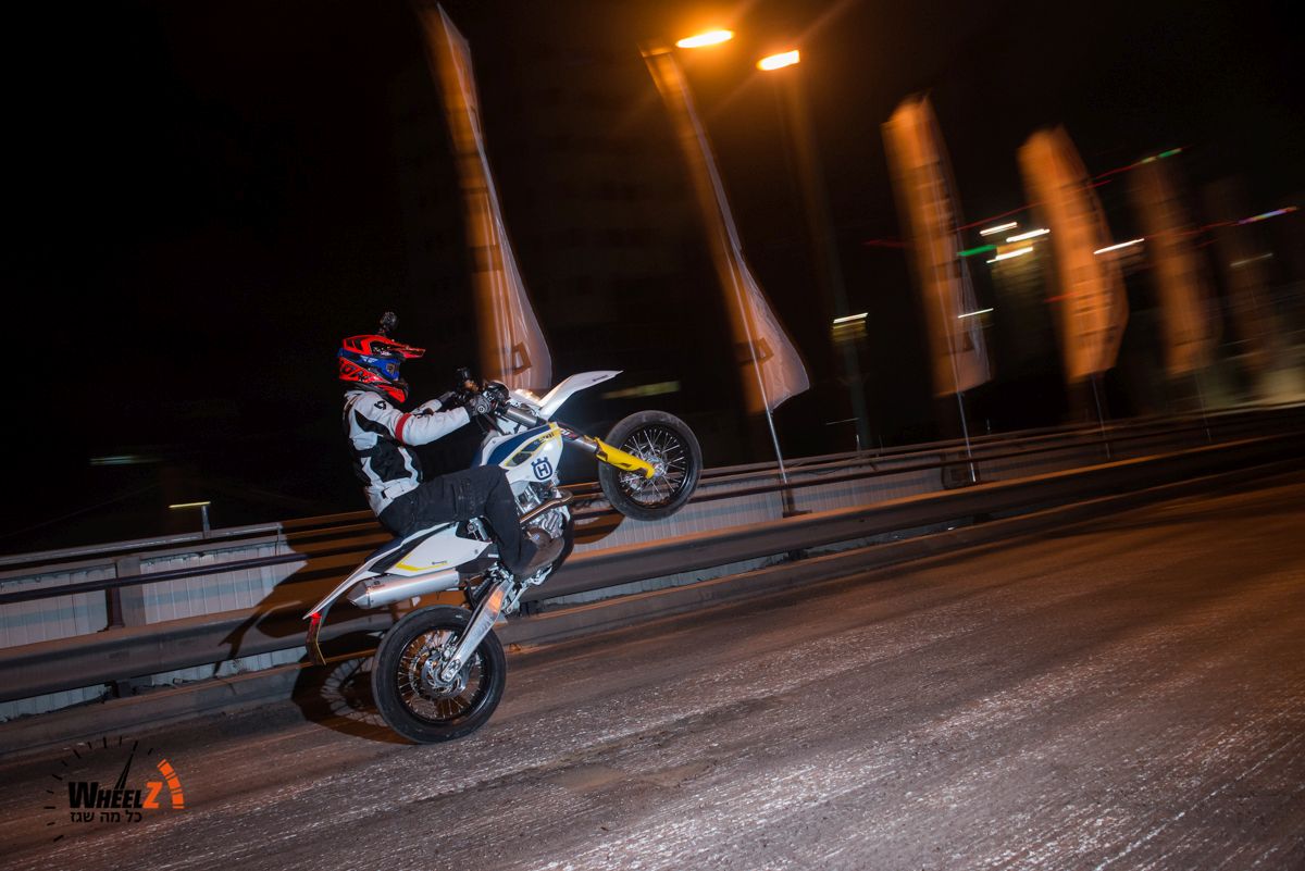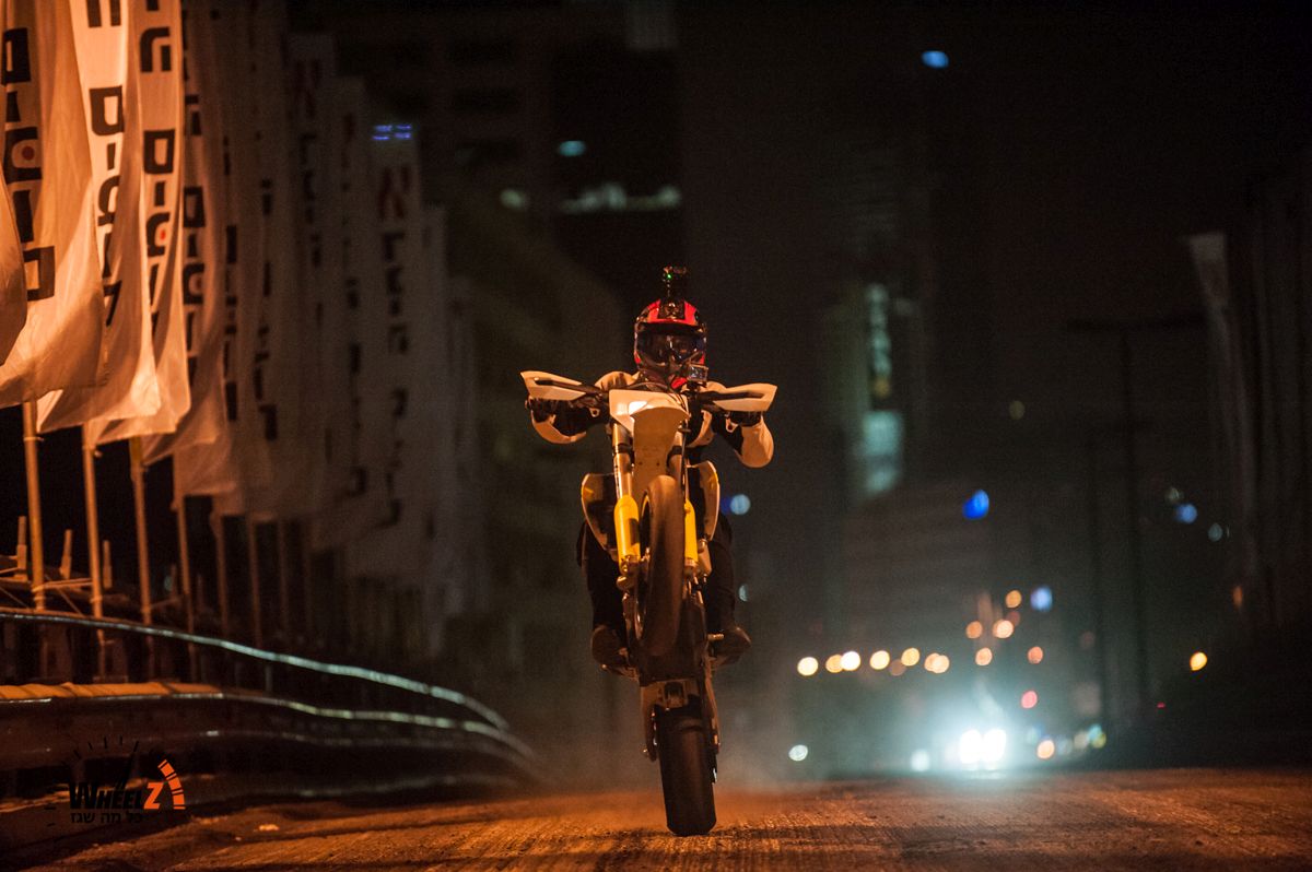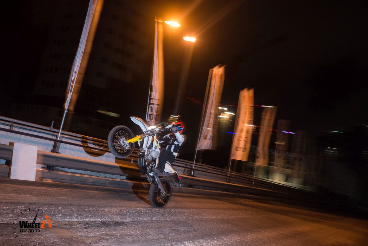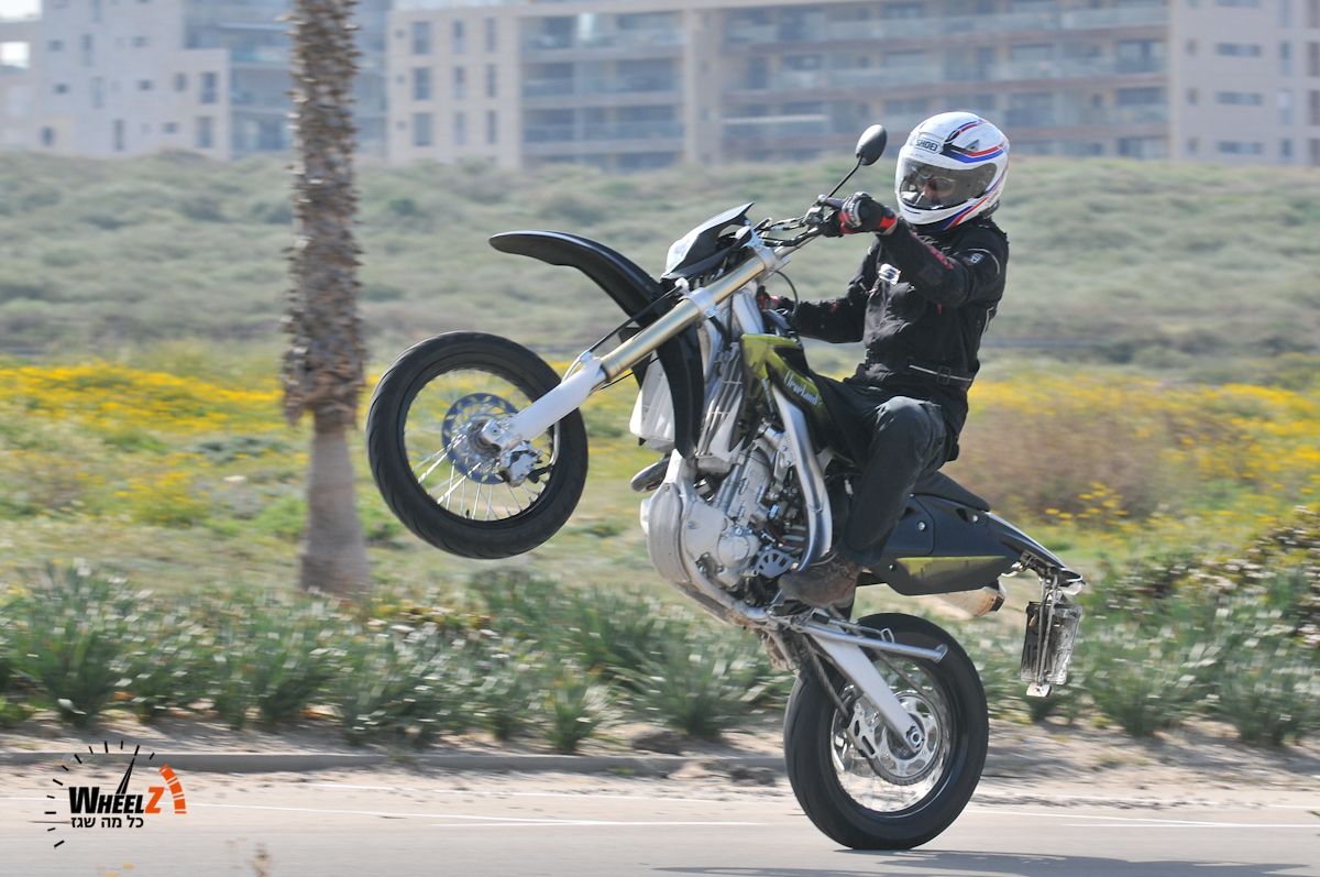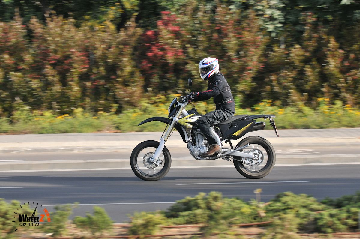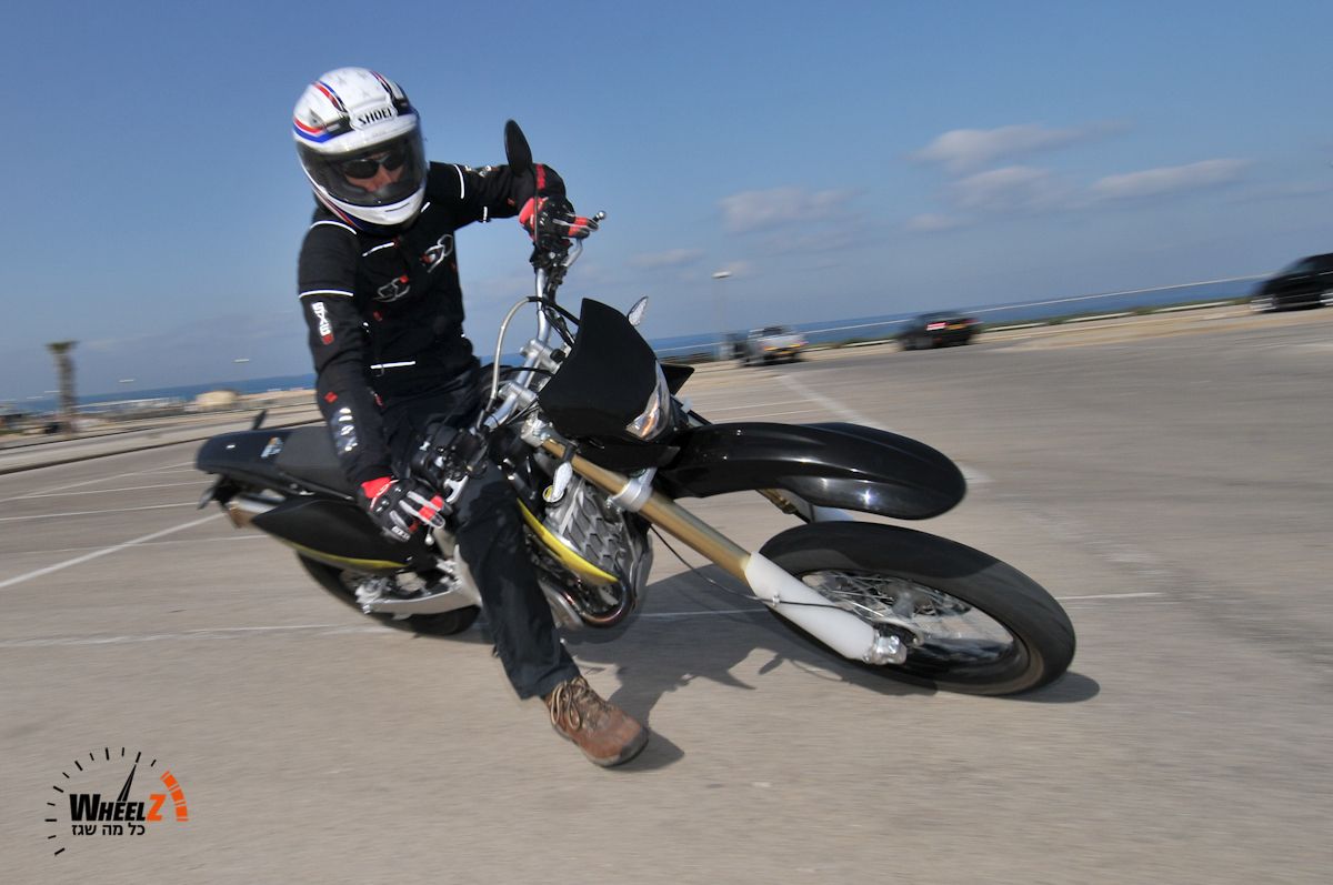 מומלץ גם לרכב כמה שיותר בכבישים מהירים, כי בכבישים בין עירוניים עם רמזורים יש אדום, ואז כשיש ירוק אתם תהיו בווילי. בהתחלה הוא מרגיש קצת פראי, אבל מרגע שקולטים את הקטע שלו, מגלים פה מכונת ווילים מטורפת. אני לא מחשיב את עצמי אמן ווילי, רחוק מזה, אבל ה-SMC הביא אותי למקומות שלא ידעתי לפני כן ורק על זה מגיע לו תודה אישית. ווילי שמתחיל בשני (כי בראשון צריך להיות רוק בגורוס) ויורד בחמישי, כאילו האופנוע לא רוצה לרדת. וגם אם נראה שהאף קצת ירד, תן לו עוד קצת גז והוא ירים אותו בחזרה. אם אתם אוהבים לבלות על הגלגל האחורי, אין מצב שלא תאהבו אותו בקטע הזה. כמובן שאם אתם כבר בקטע של חוליגניזם, אז יש מצמד מחליק שמקל מאוד את החיים בהחלקות זנב בכניסה לפנייה.