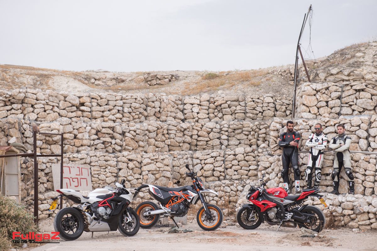 אני קצת מקנא בו, למרות שאין לי ממש סיבה. הבימר לא מתרגש וצמוד לו לזנב, ובמקומות שנפתחת ישורת גם עולה לווילי בהילוכים שלישי ורביעי, וזו בעיניי בדיוק תמצית הסופר-נייקד. דווקא בקטע הכביש הזה, שהוא המהיר והשוטף ביותר שיהיה לנו היום, הקטע שהכי תפור על אופנוע סופרספורט, אני לא מוצא מספיק הבדלים שבגללם יהיה שווה בעיניי להגיע לפה על אופנוע ספורט, וזה לא משנה אם זה ה-F3, R6 או ZX10R. אני מניח שאם היינו יורדים לסדום ערד כדי לתפור אותו מעלה ומטה כל היום אולי הייתי מדבר אחרת, אבל אנחנו לא בסדום ערד והקטע של הסוויפרים אוטוטו מתחלף בדובדבן שלשמו יצאנו לדרך.