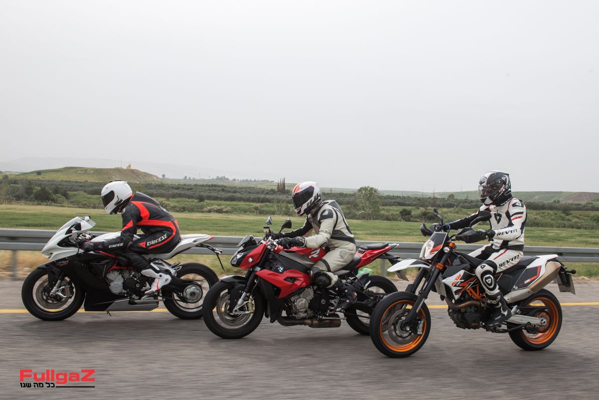 אבל בסופו של יום, אם הייתי צריך לבחור רק אחד לחזור איתו הביתה זה היה ה-F3 כנציג אופנועי הספורט. נכון, הוא לא פרקטי בשיט ואין פה בארץ מסלול שעליו הוא יוכל להפגין את העליונות שלו מול שני האחרים, אבל סובייקטיבית הוא הכי עושה לי את זה. אפילו אם זה אומר שיש רק פנייה אחת בכל הכבישים בישראל שבה אני אגיע לתחושה העילאית שאופנוע כזה מסוגל לספק לי כרוכב. ואם אין כזו אז אני אסתפק בו בתור קישוט לסלון.