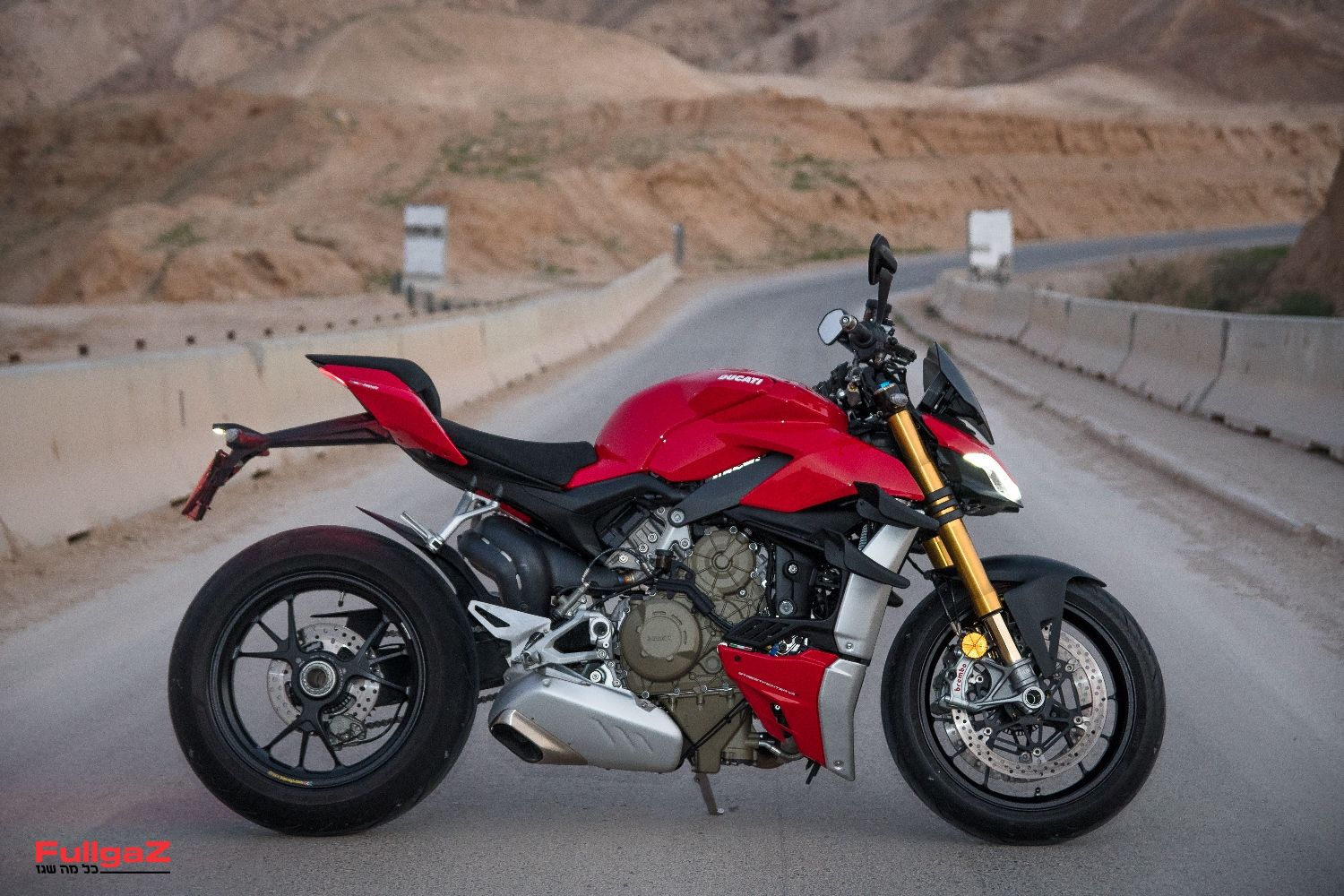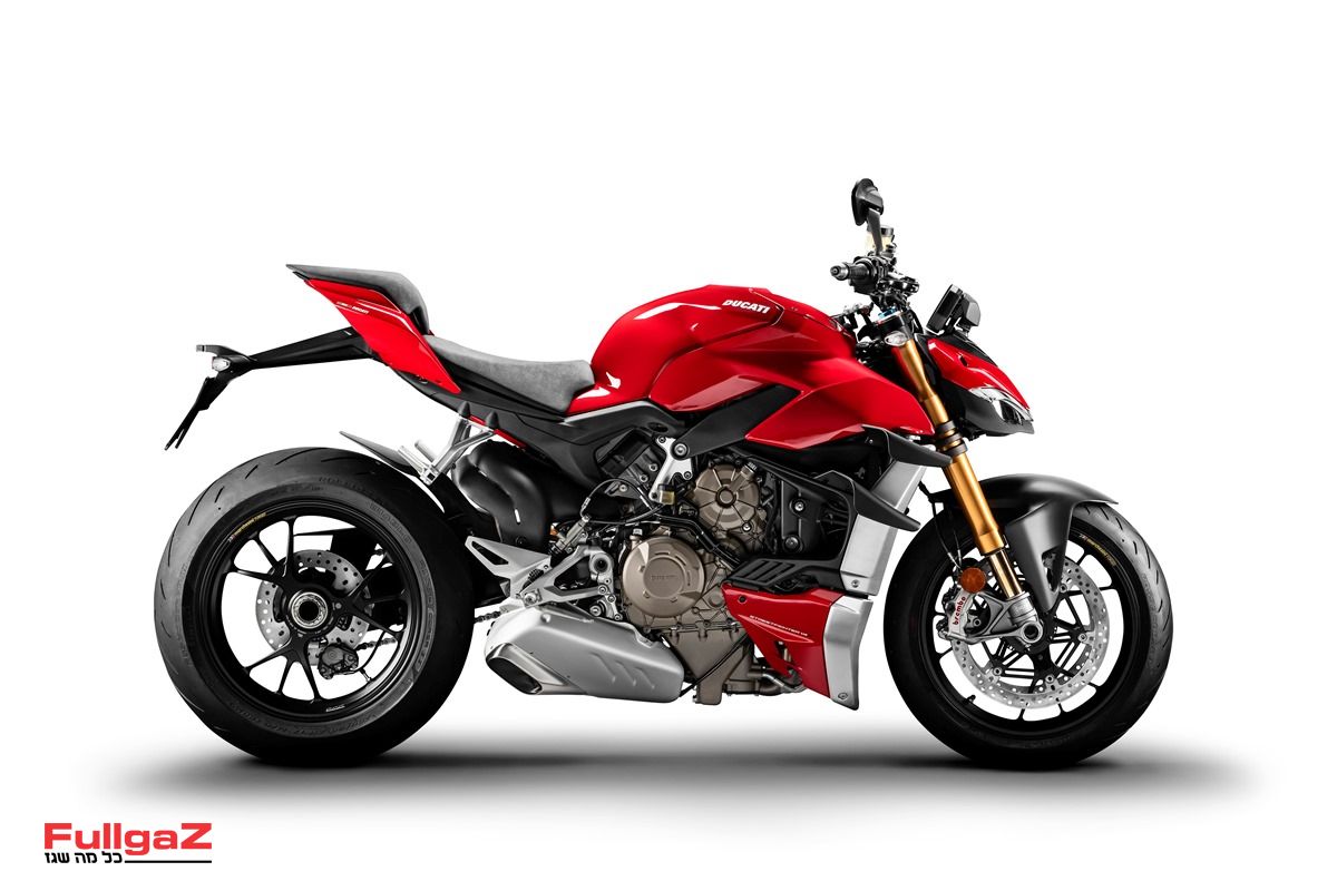 הסטריטפייטר V4 – או בשמו המלא דוקאטי פניגאלה V4 סטריטפייטר – הוא גרסה מופשטת פיירינג עם כידון שטוח וגבוה של הפניגאלה V4 מבית היצרנית האיטלקית. המנוע – דזמוסדיצ'י סטרדלה V4 – זהה לפניגאלה V4, עם נפח של 1,103 סמ"ק, והוא מספק 208 כ"ס ב-12,750 סל"ד. ההספק הופחת במעט ביחס לגרסת המקור, אולם המומנט טיפס – ובעיקר התעבה, כשכבר בסל"ד נמוך ובמהירויות נמוכות יש שפע של מומנט זמין – 30% יותר מקודמו בתפקיד עם מנוע ה-1,098. אגב, עם קיט מרוצים למסלול בלבד, שכולל מערכת פליטה ייעודית של אקרפוביץ' השוקל 6 ק"ג פחות, תוכלו להעלות את ההספק ל-220 כ"ס! המשקל המלא עומד על199 ק"ג לגרסת ה-V4 S ו-201 ק"ג ל-V4.