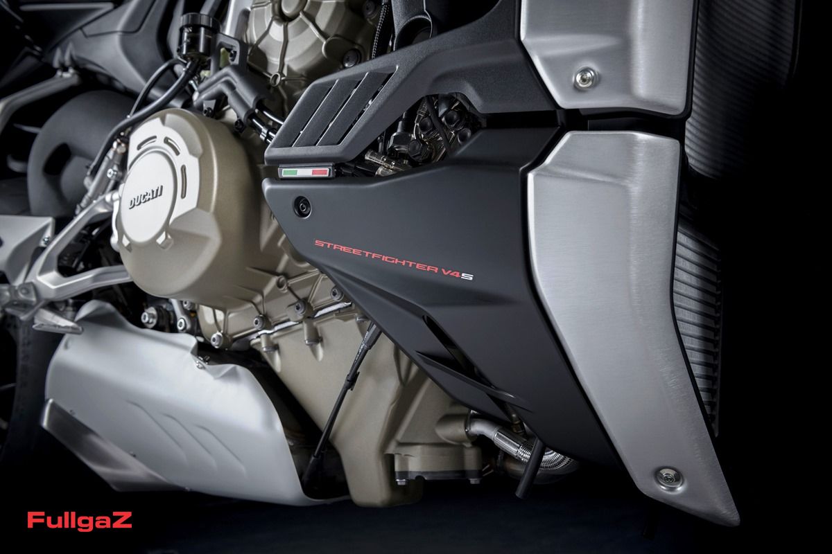 הסטריטפייטר V4 הוא גרסה מופשטת פיירינג עם כידון שטוח וגבוה של הפניגאלה V4 מבית היצרנית האיטלקית. המנוע זהה לפניגאלה V4, עם נפח של 1,103 סמ"ק המספק 208 כ"ס ב-12,750 סל"ד. ההספק הופחת במעט ביחס לגרסת המקור, אולם המומנט טיפס – ובעיקר התעבה, כשכבר בסל"ד נמוך ובמהירויות נמוכות יש שפע של מומנט זמין – 30% יותר מקודמו בתפקיד עם מנוע ה-1,098. אגב, עם קיט מרוצים למסלול בלבד, שכולל מערכת פליטה יעודית של אקרופוביץ' השוקל 6 ק"ג פחות, תוכלו להעלות את ההספק ל-220 כ"ס! המשקל היבש עומד על178 ק"ג לגרסת ה-V4S ו-180 ק"ג ל-V4.