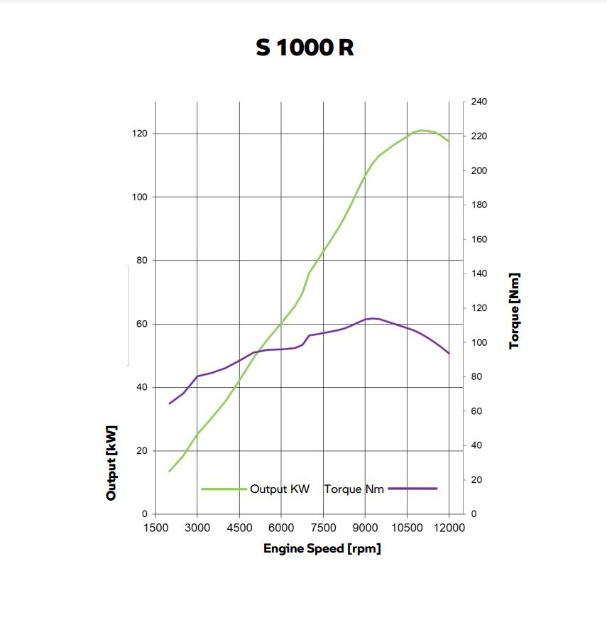 שנתיים אחרי ה-S1000RR ושנה אחרי ה-S1000XR, בב.מ.וו חושפים את הסופר נייקד במשפחת ה-S1000 – ה-S1000R – הבנוי על בסיס הפלטפורמה המשותפת. כך למשל, מנוע ה-4 צילינדרים בנפח 999 סמ"ק שהגיע מצמד האחים, רק שכאן הוא ללא מערכת תזמון השסתומים המשתנה, ה-ShiftCam, שקיימת ב-S1000RR. כך או כך, המנוע בגרסתו האחרונה, שכמובן עומד בתקנות יורו 5, מפיק 165 כ"ס ב-11,000 סל"ד ו-11.62 קג"מ ב-9,250 סל"ד, כשבב.מ.וו מציינים שהמנוע מכוון למומנט זמין בסל"ד נמוך ובינוני – 8 קג"מ כבר ב-3,000 סל"ד ו-9 קג"מ כבר ב-5,000 סל"ד. בנוסף, יש קלאץ' מחליק חדש, ונעשו שינויים בהילוכים 4, 5 ו-6 כך שיהיו ארוכים יותר לצורך נוחות ברכיבות מהירות.