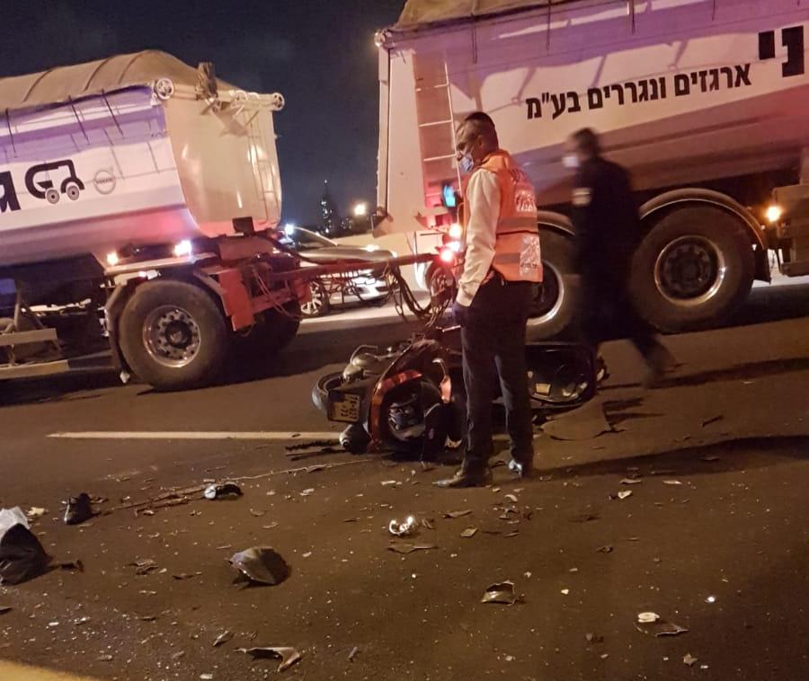 זירת התאונה בשד' בגין בירושלים שבה נהרג רוכב בן 25