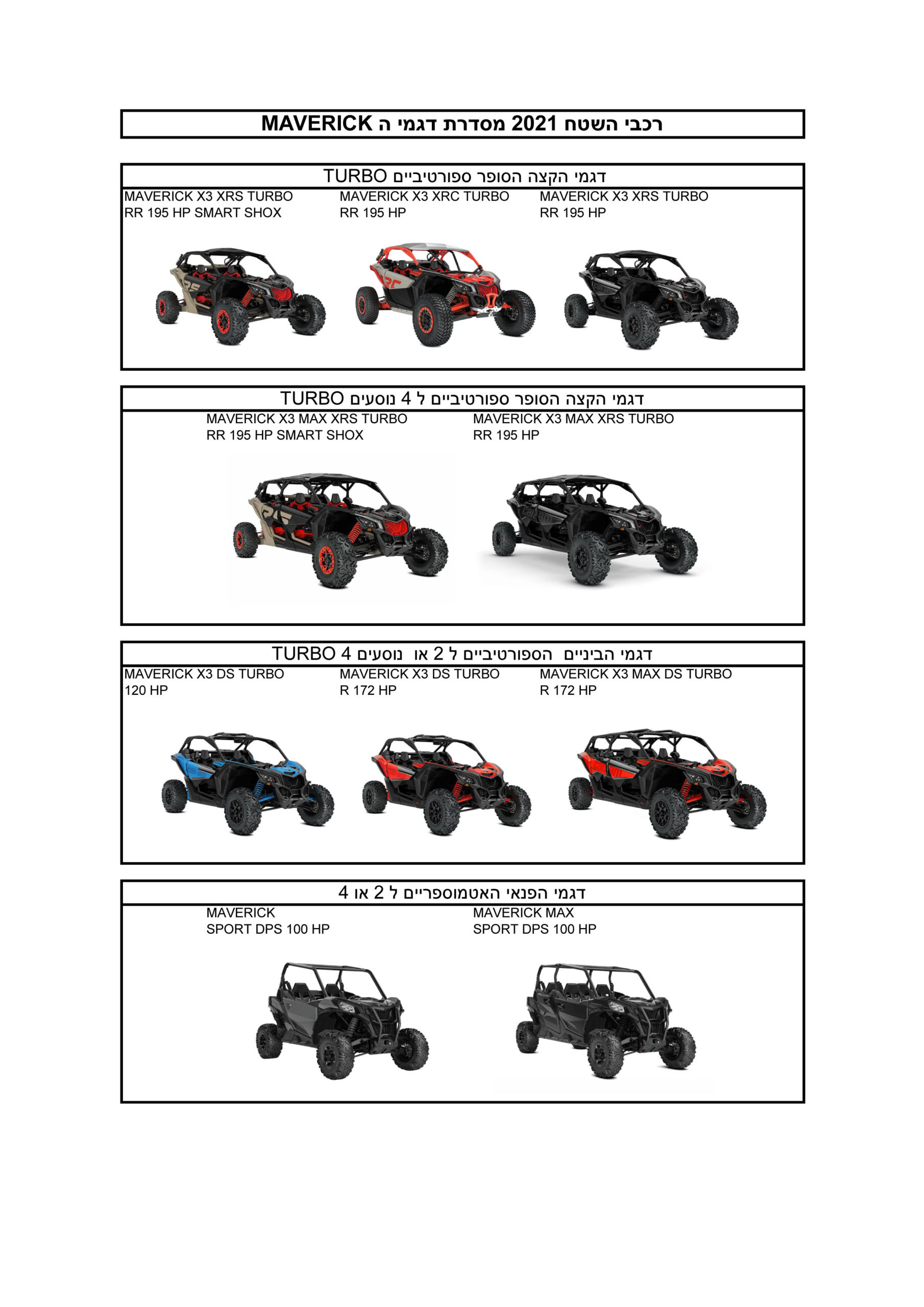 על כל הטוב הזה צריך לשלם, והרבה. המאבריק X3 בגרסאות X RS ו־X RC עולים 282 ו־283 אלף ש"ח בהתאמה. המאבריק R בגרסת X שבדיוק הגיע ארצה, עולה 335 אלף ש"ח. גרסת ה־X RS כבר מטפסת ל־379 אלף ש"ח, ואילו ה־X RC החדש וכן ה־MAX X RS עם ארבעת המושבים כבר עולים 399 אלף ש"ח כל אחד. 400 אלף ש"ח לכלי פנאי לשטח, מה שאומר שמדובר בכלים לבעלי כיסים עמוקים במיוחד, אבל הו, כמה שהרוכשים הולכים ליהנות מכל קילומטר בשטח!
