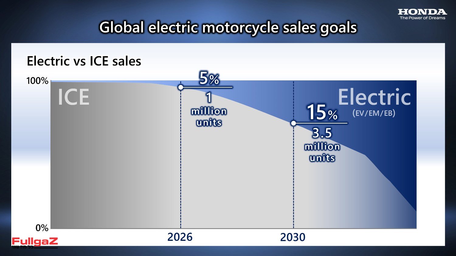 בהונדה מתכננים לעבור להנעה חשמלית בלבד עד לשנת 2040, כאשר בשנתיים הקרובות יוצגו 10 אופנועים חשמליים טהורים בדמות קטנועים חשמליים וגם אופנועי 'כיף' חשמליים.