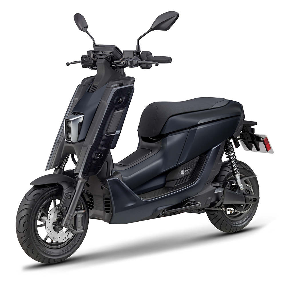 - מפרט טכני: מנוע חשמלי 3,000 וואט (כ-4 כ"ס), סוללת ליתיום 2.3Ah במשקל 15 ק"ג, טעינה מלאה ב-6 שעות, טווח רכיבה 66 ק"מ עד 85 ק"מ במצב אקו, שלדת צינורות פלדה, בולם קדמי קפיץ הידראולי חד-צידי, בולם אחורי כפול, דיסק קדמי ואחורי בקוטר 175 מ"מ, מערכת בלימה משולבת CBS, אורך 1,680 מ"מ, משקל מלא 94 ק"ג, צמיגים 100/80-10