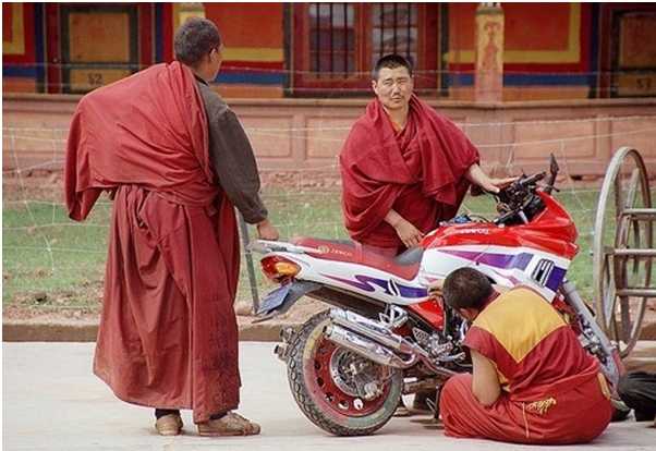ענה הראשון: "רוכב אני על אופנועי על מנת להגיע אל כל אותם מקומות נידחים שם יכול אני להעניק לאנשים לימוד רוחני ולסייע להם בכל אשר יצטרכו!". הנהן ראש המנזר בראשו, הצמיד יחד את כפות ידיו בברכה ואמר לנזיר "אין ספק כי תהיה אתה נזיר דגול ביום מן הימים".