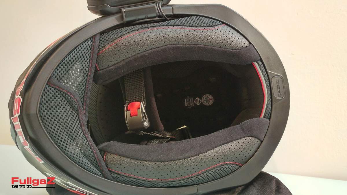 לקח לי בערך 3 שניות מהרגע ששמתי את הקסדה על הראש בשביל להגיד "וואו, כמה שהיא נוחה!". ה-Race R-Pro היא אחת הקסדות הנוחות שמדדתי בחיי, וזה כולל לא מעט קסדות. אזכיר שוב עניין חשוב ביותר: הדבר תלוי לחלוטין במבנה הראש, ולא כל קסדה תתאים לכל אחד ותהיה לו נוחה באותה המידה. לשמחתי היא התאימה למבנה הראש שלי בצורה כל כך טובה שהחלטתי לוותר על ה'טקס' הקבוע שלי שכולל סיבוב בחנות עם הקסדה על הראש למשך כמה דקות. היא עוטפת את הראש בצורה מושלמת, הדוקה מכל הכיוונים ותומכת בלחיים, אך נוחה ולא לוחצת מדי, והריפודים איכותיים מאוד, רכים ומפנקים.