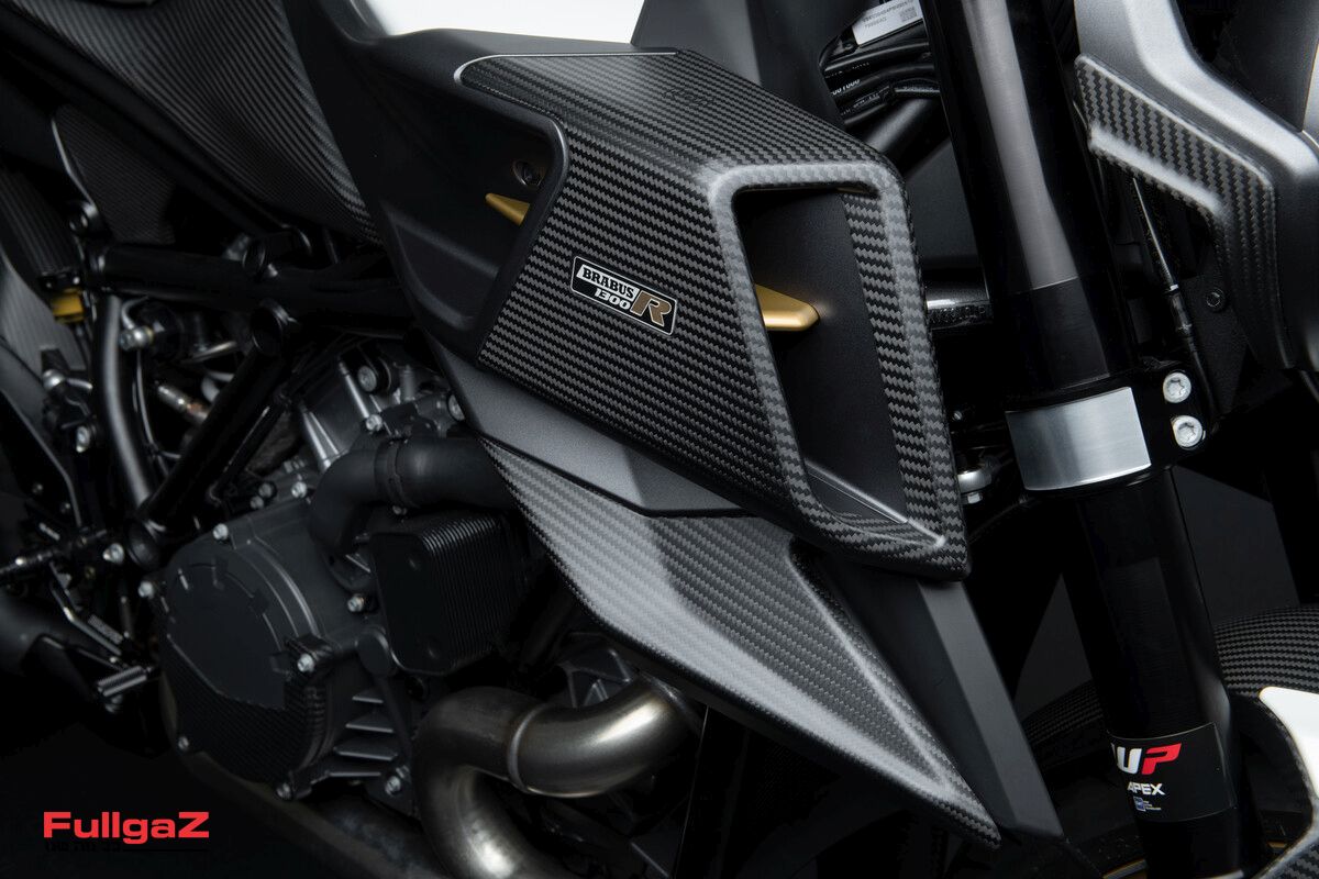 המנוע משמש כגורם נושא עומס מרכזי, יחד עם זרוע אחורית חד-צדית אשר מעוגנת ישירות אליו עם מערכת לינקים פרוגרסיבית. הבולמים כמובן של WP מדגם APEX, פה מכויילים מחדש, עם כיוונים מלאים מלפנים ומאחור ומהלך גלגל דומה של 125 מ"מ מלפנים ו-140 מ"מ מאחור. זווית ראש ההיגוי משתנה מ-64.8° ל-65.3° לטובת היגוי זריז יותר. הבלמים הקדמיים נשארים עם קליפרים רדיאליים מונובלוק של ברמבו מדגם Sylema, על דיסקים בקוטר 320 מ"מ ודיסק יחיד של 240 מ"מ מאחור. הצמיג האחורי במידה 200/55ZR17, כאשר הקדמי במידה של 120/70ZR17. מיכל הדלק מקבל עוד 1.5 ליטר (17.5 ליטר סך הכל) אשר מאפשרים על הנייר טווח רכיבה של 300 ק"מ. המשקל המלא עולה ל-212 ק"ג.