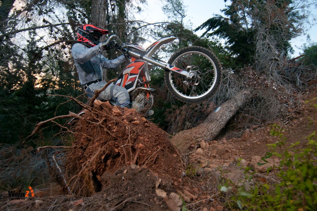 עכשיו, עם המנוע הקל והגמיש ועם הממדים הצנומים של הפרירייד, זה הזמן להתחיל להשתעשע. את ההתנהגות הדינמית של הפרירייד אנחנו כבר מכירים מה-350. יש פה יופי של מערכת מתלים שמתאימה בול לסגמנט, והחבילה הכללית מאוד שלמה ומאוזנת. אבל עכשיו, עם המנוע הקל יותר, הרכיבה על הפרירייד הופכת להיות קלה משמעותית. אחד המאפיינים הגדולים ביותר של הפרירייד 250R מבחינתנו הוא הביטחון שהוא מספק לרוכב לעשות דברים שטרם עשה, כמו למשל להיכנס דוך לתוך היער, ולהסתדר. עם אופנוע אנדורו בגודל מלא זה עלול להיות קשה ואף מתיש – בגלל הגודל, הגובה, המשקל והתפעול החד. כאן עם הפרירייד 250 זה הופך להיות משחק ילדים. המומנט הזמין מאפשר להרים את הגלגל בנגיעה בגז, והממדים הקטנים מאפשרים להיכנס לכל פינה, להוריד רגליים כשמרגישים חוסר יציבות או כשצריך לעצור, ואם הגעתם לקטע בלתי עביר – פשוט מסובבים אותו על המקום – כמו אופניים – וממשיכים בקטע אחר. זווית הצידוד הגדולה של הכידון מאפשרת לסובב אותו כמעט בכל מקום, ואם אין מקום – וזה גם קטע – אפשר להרים את הקדמי לווילי מעמידה ולסובב את האופנוע במקום. פתאום זה מה-זה קל…